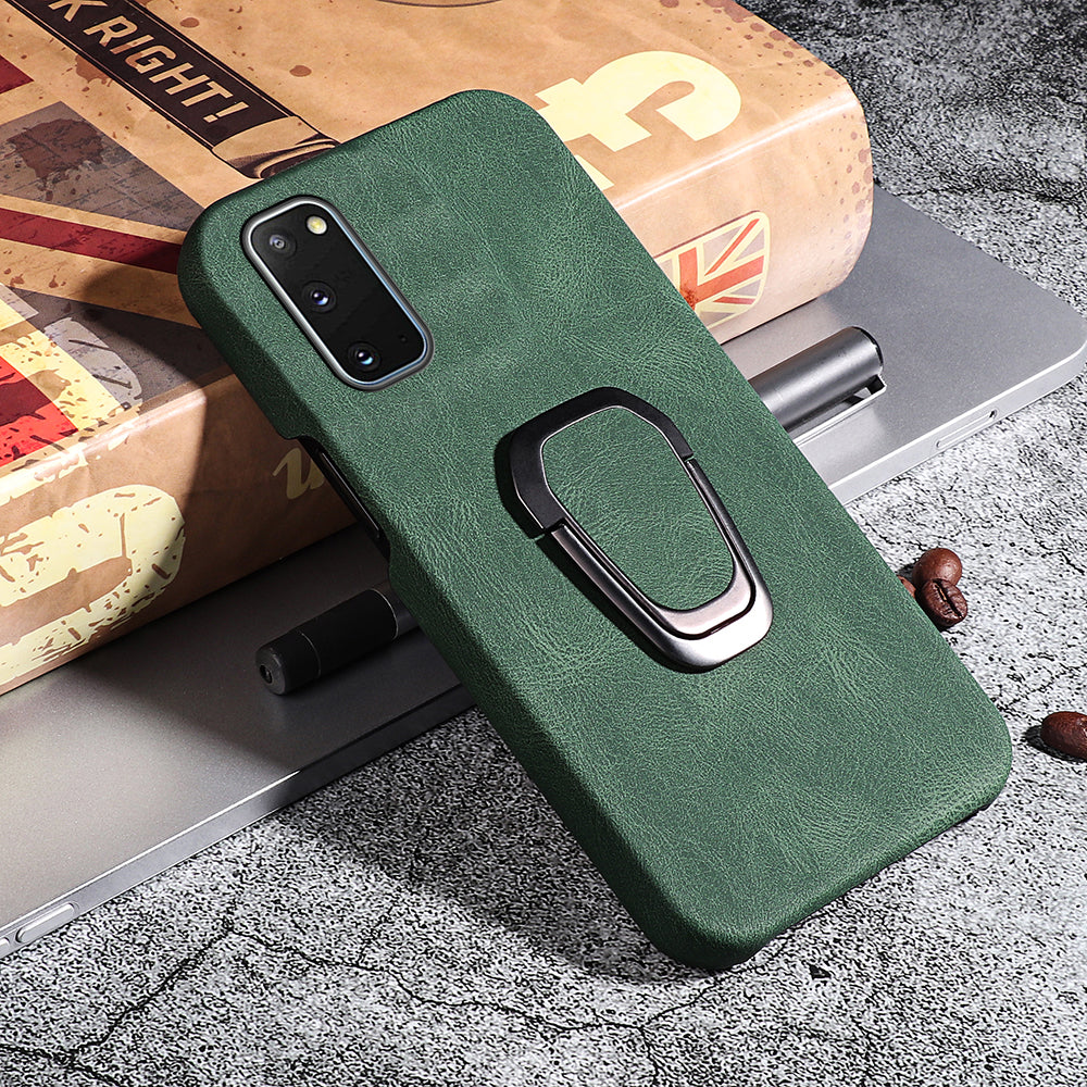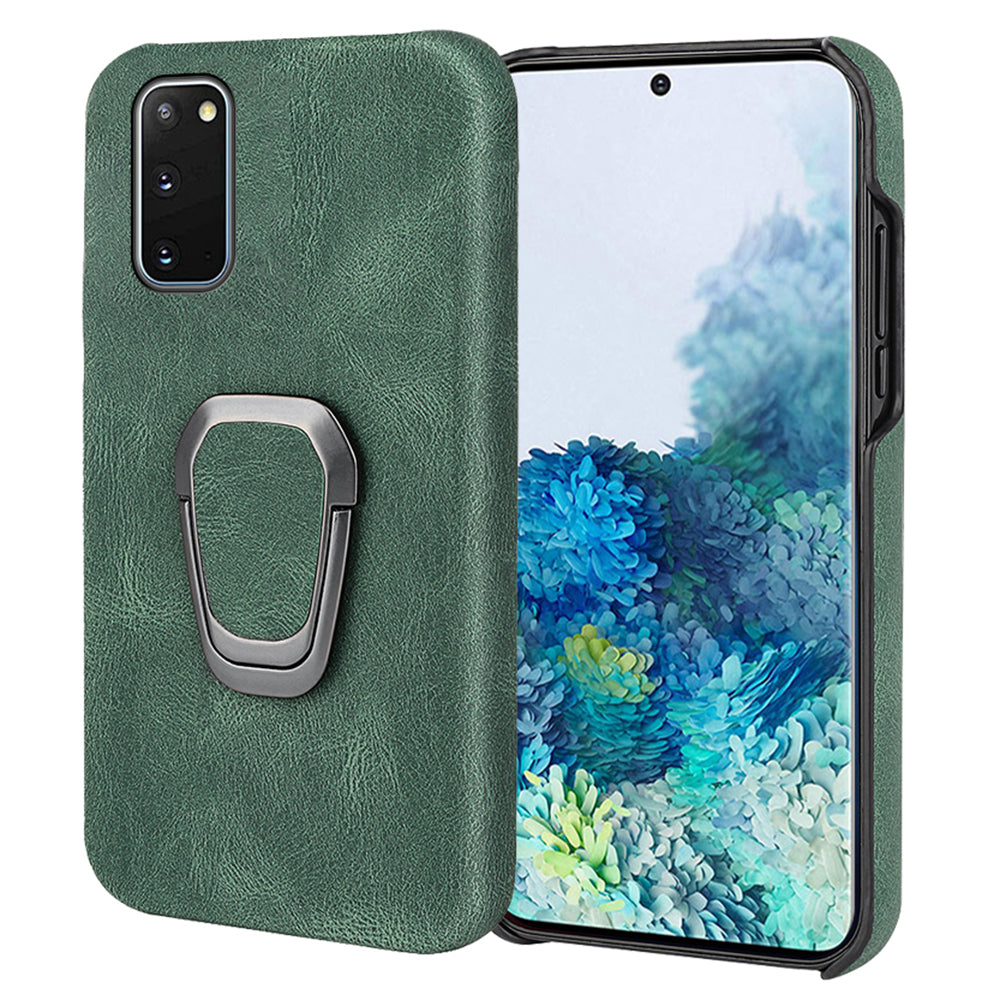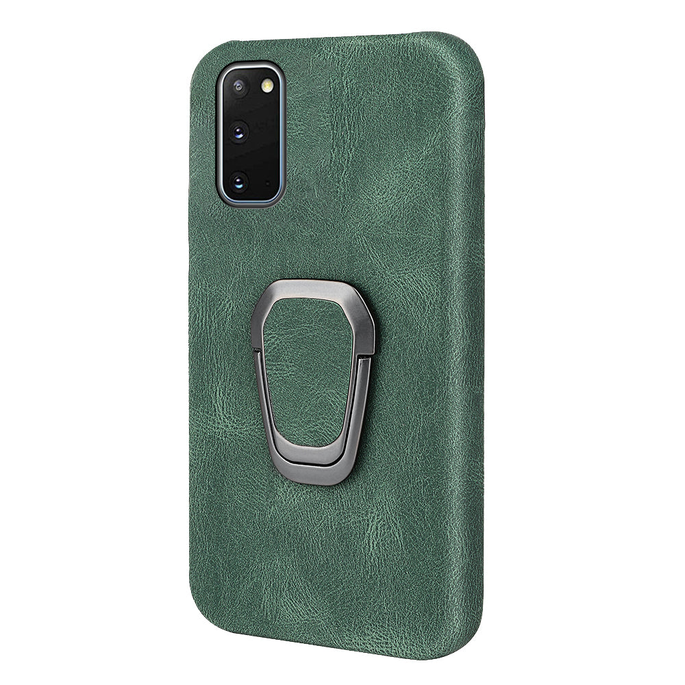 Ring Kickstand PU Leather Coated Hard PC Shockproof Protection Back Cover Shell for Samsung Galaxy S20 4G/S20 5G - Green