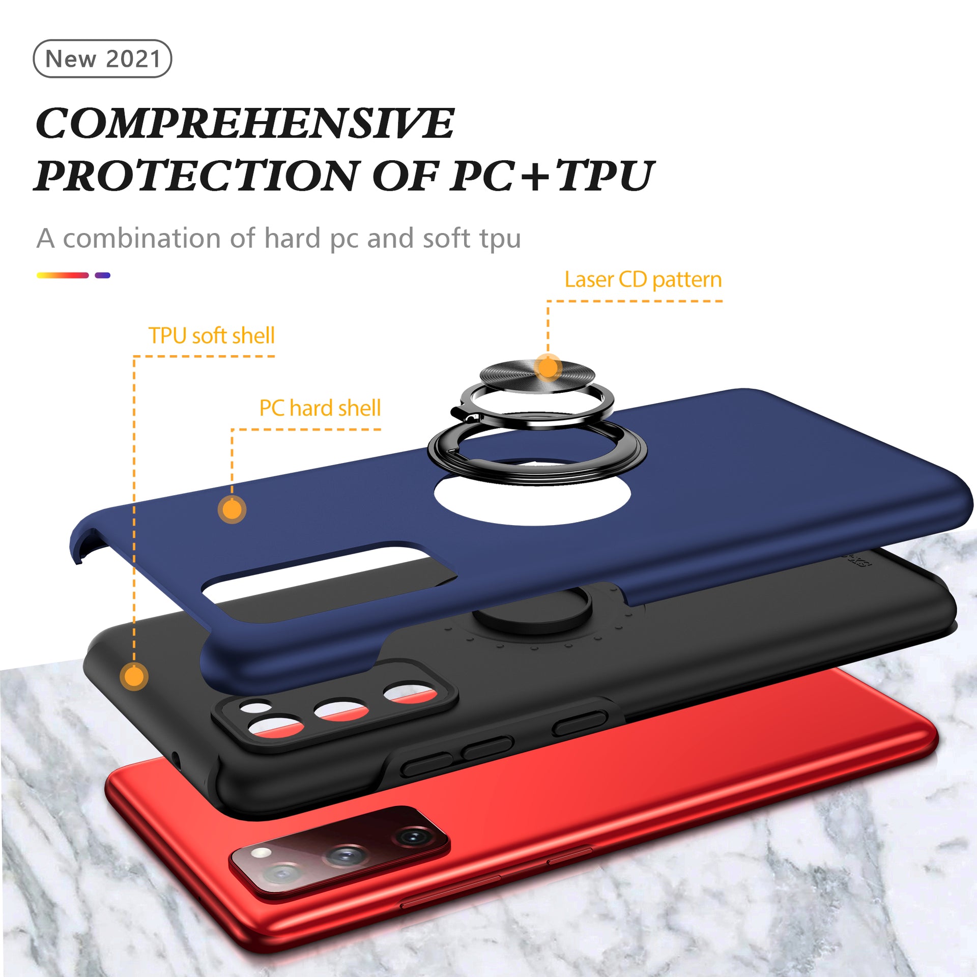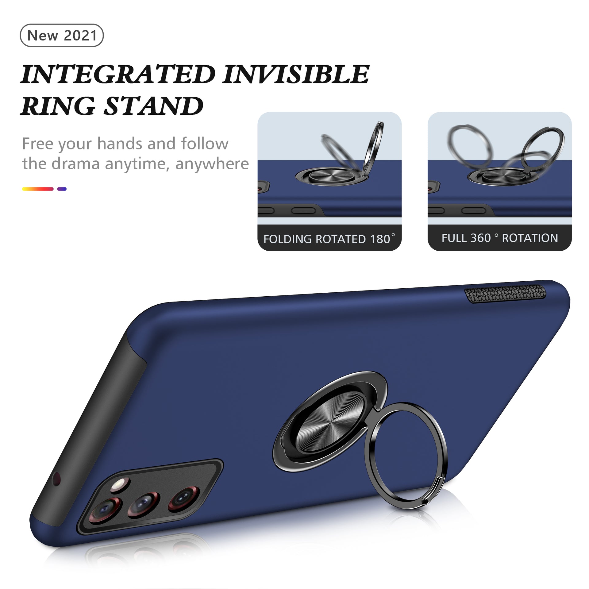 •Integrated ring holder allows easy one-hand operation, can also act as a 360-degree rotary kickstand
