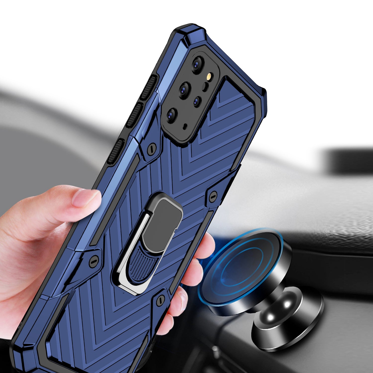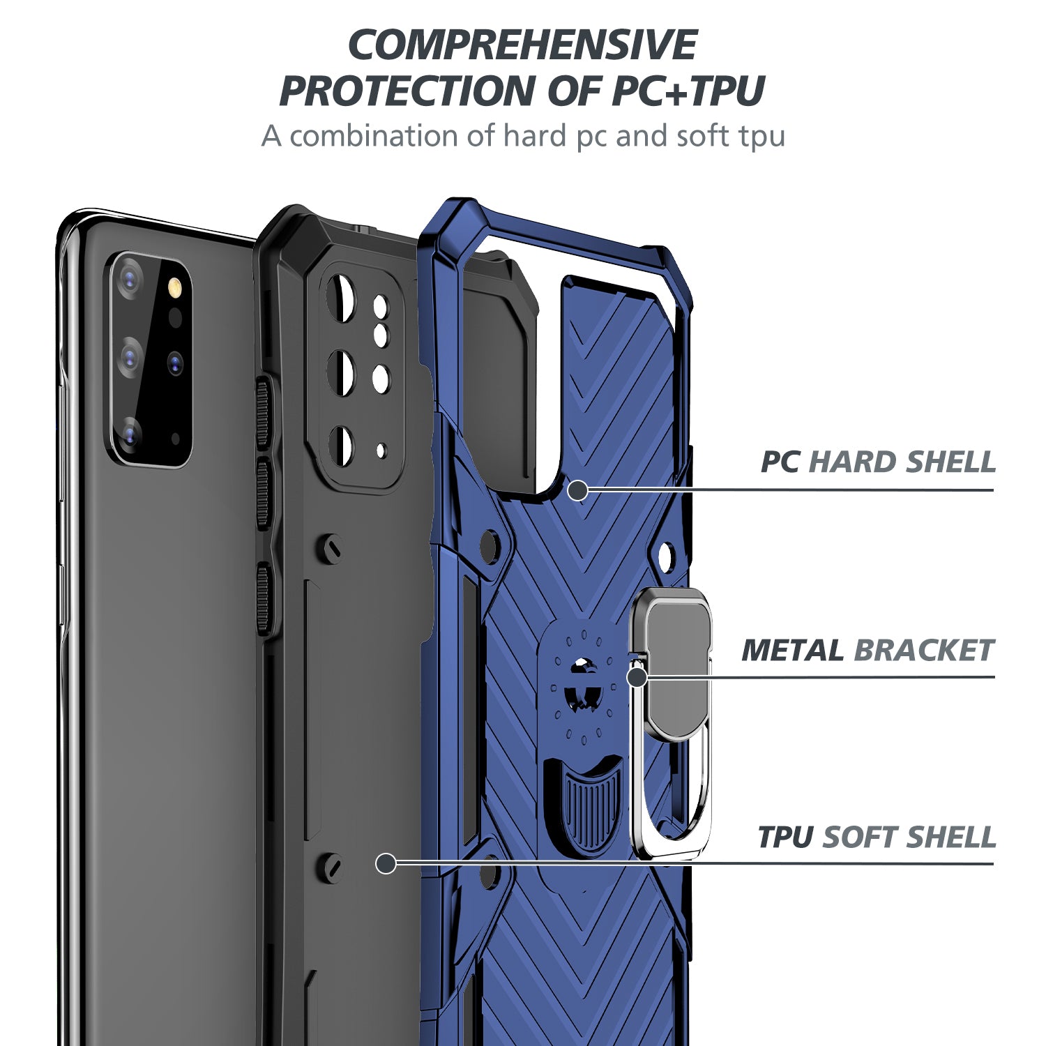 Rotatable Finger Ring Kickstand PC + TPU Combo Case for Samsung Galaxy S20 Plus - Blue