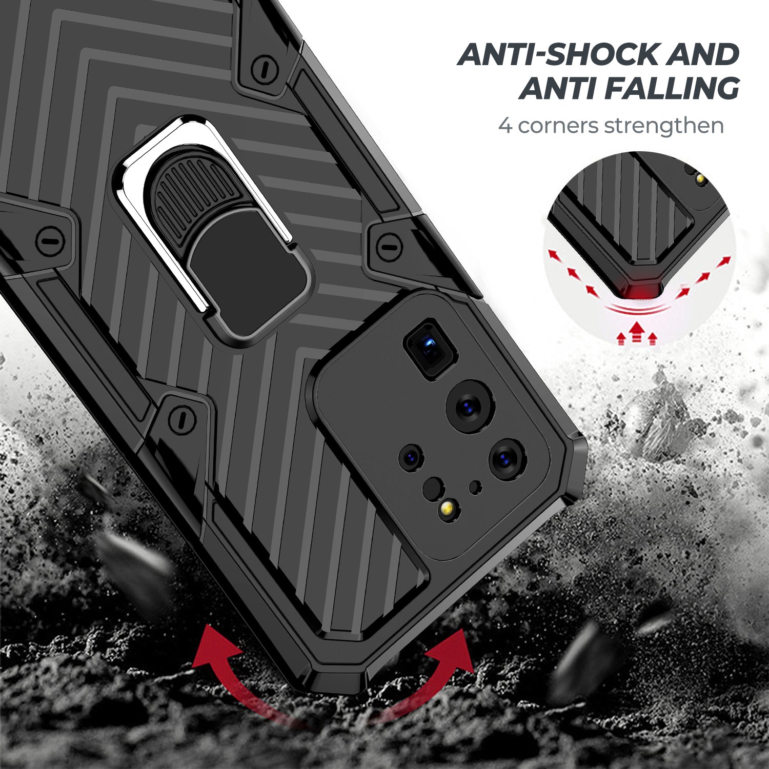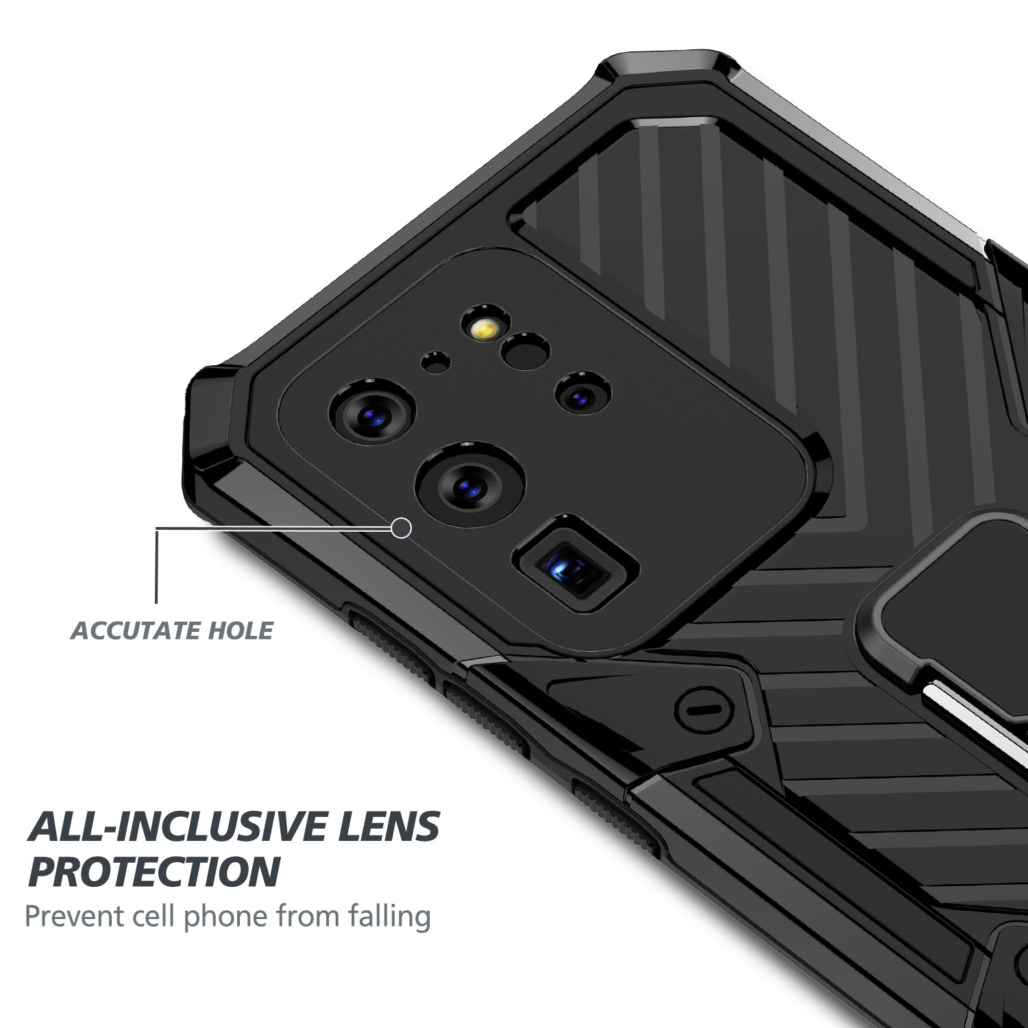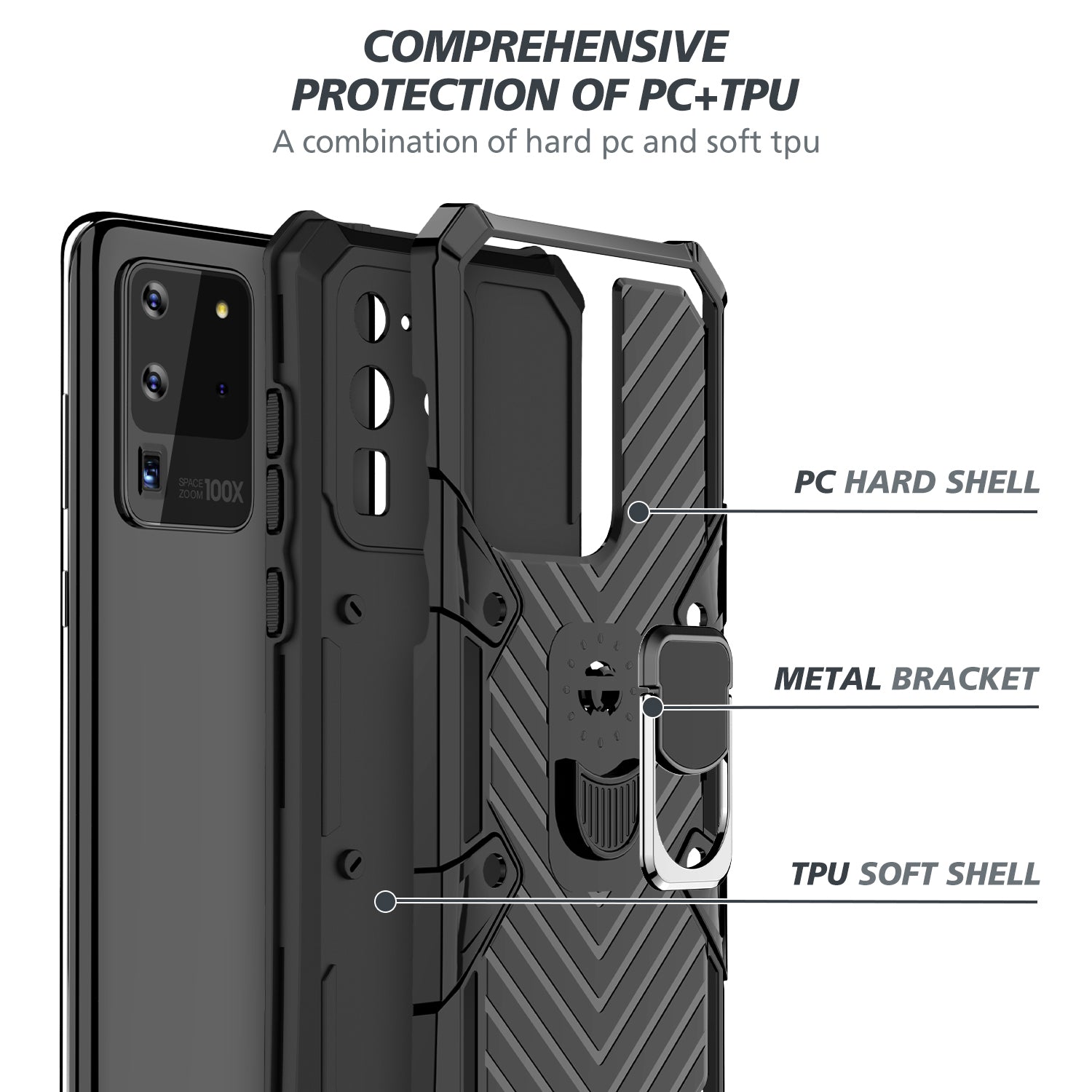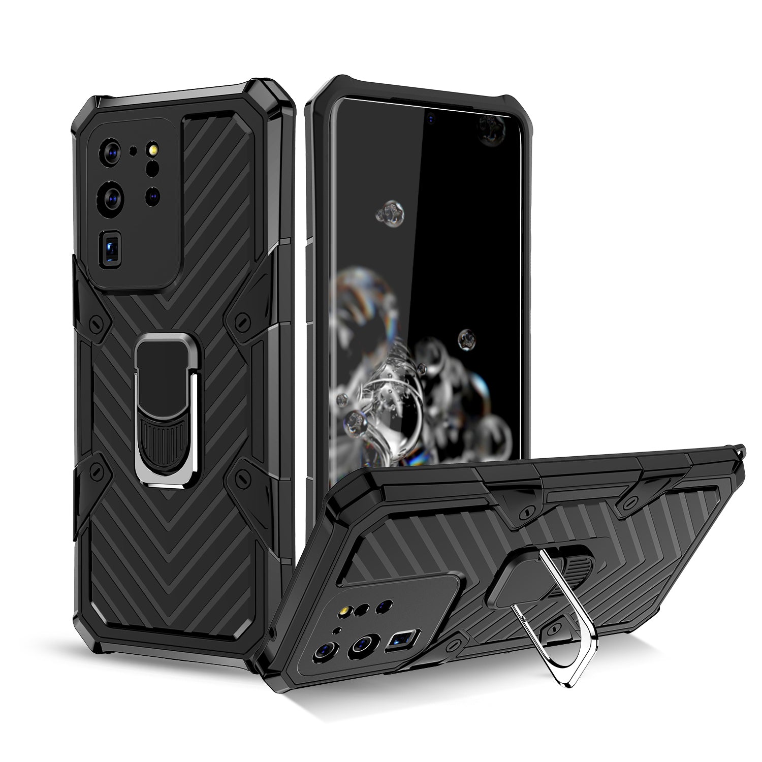 Rotatable Finger Ring Kickstand PC + TPU Combo Shell for Samsung Galaxy S20 Ultra - Black