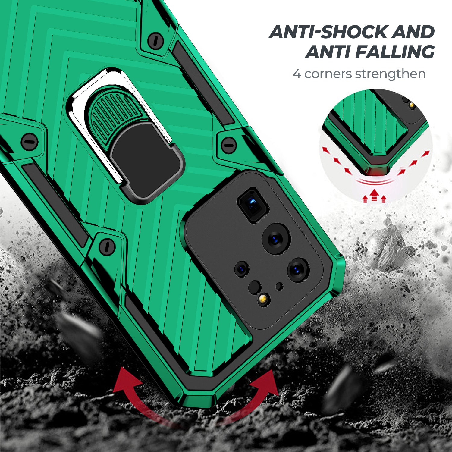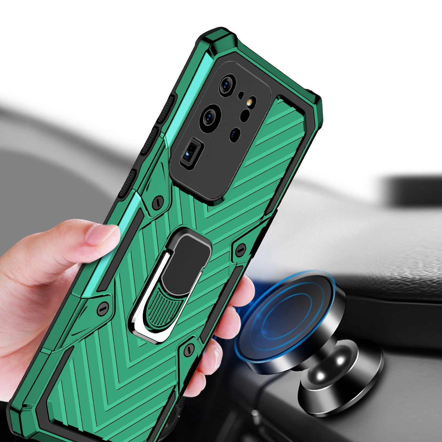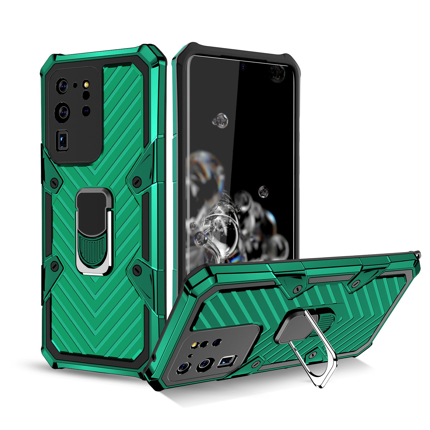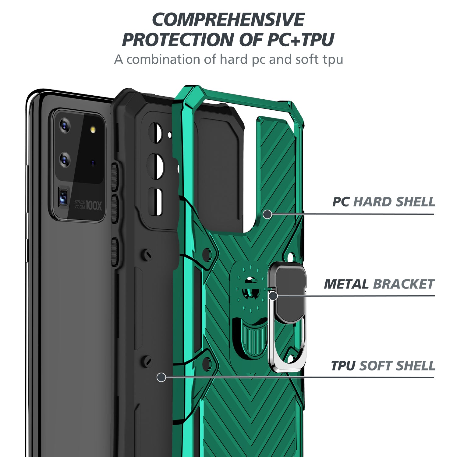 Rotatable Finger Ring Kickstand PC + TPU Combo Shell for Samsung Galaxy S20 Ultra - Dark Green