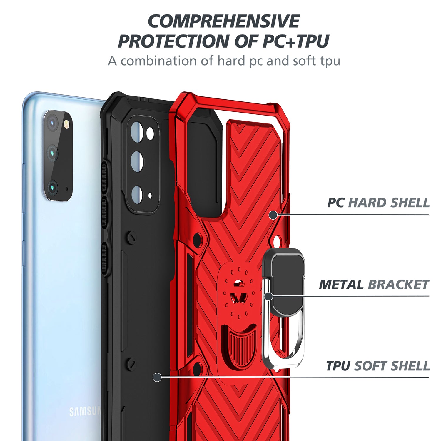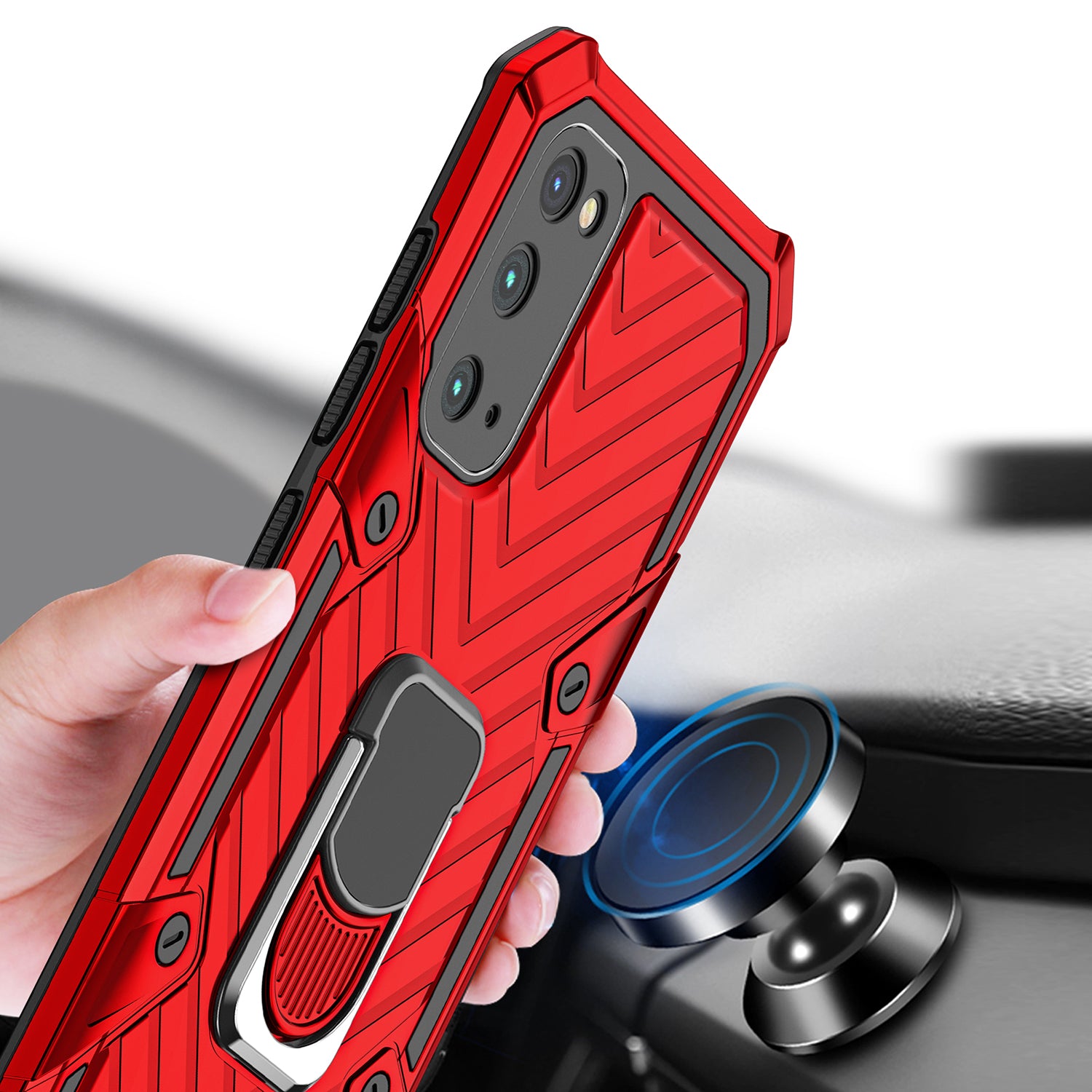 Rotatable Finger Ring Kickstand PC + TPU Hybrid Back Case for Samsung Galaxy S20 4G/S20 5G - Red