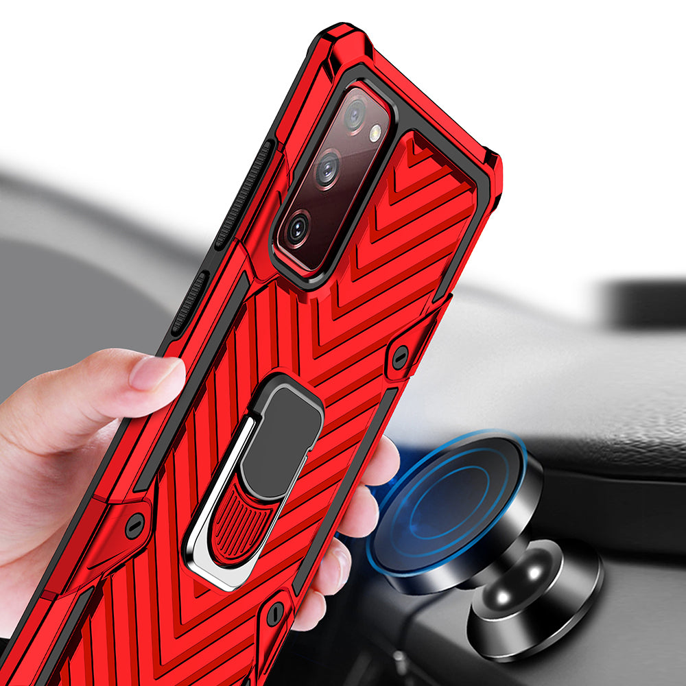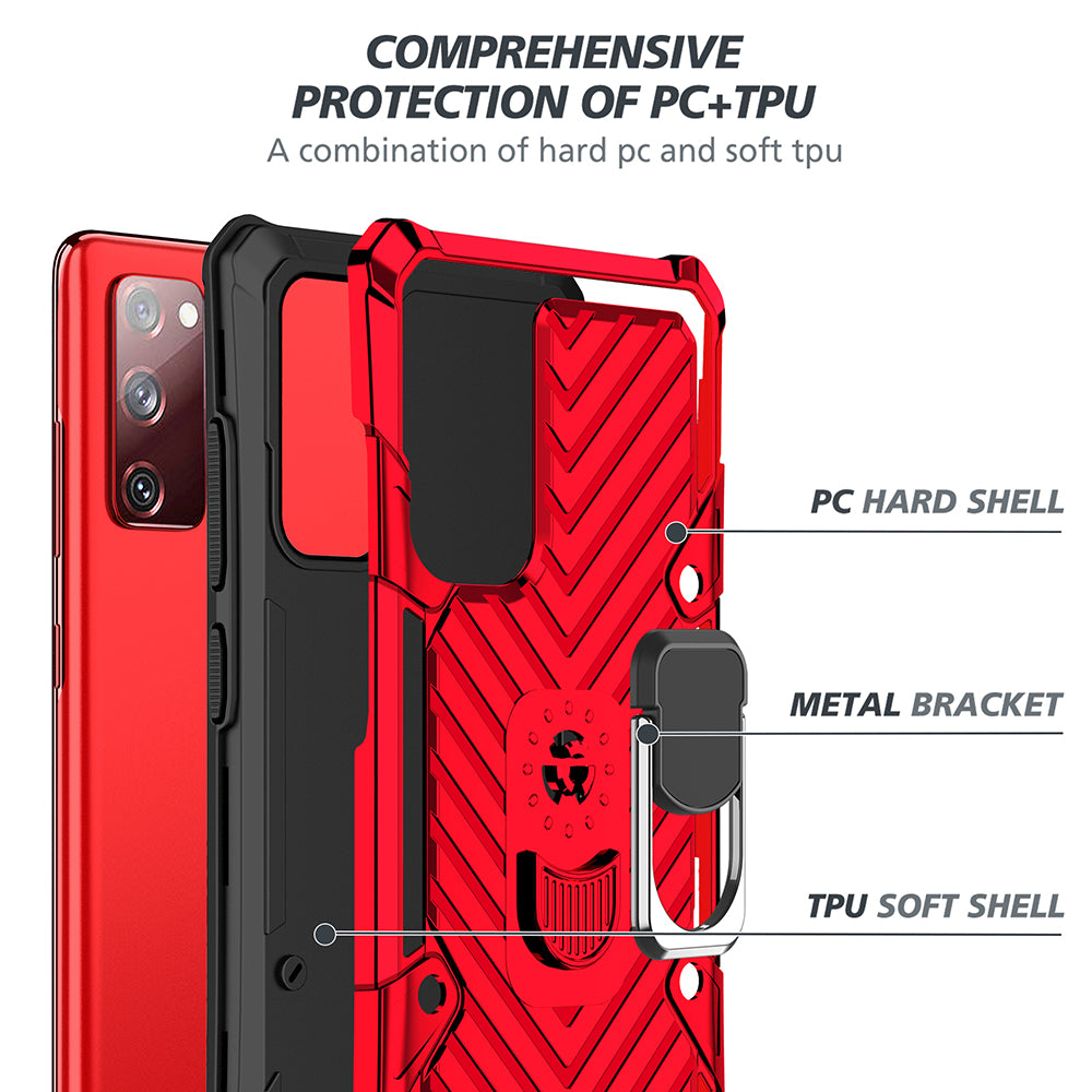 Rotatable Finger Ring Kickstand PC + TPU Hybrid Back Case for Samsung Galaxy S20 FE 4G/5G/2022/S20 Lite - Red