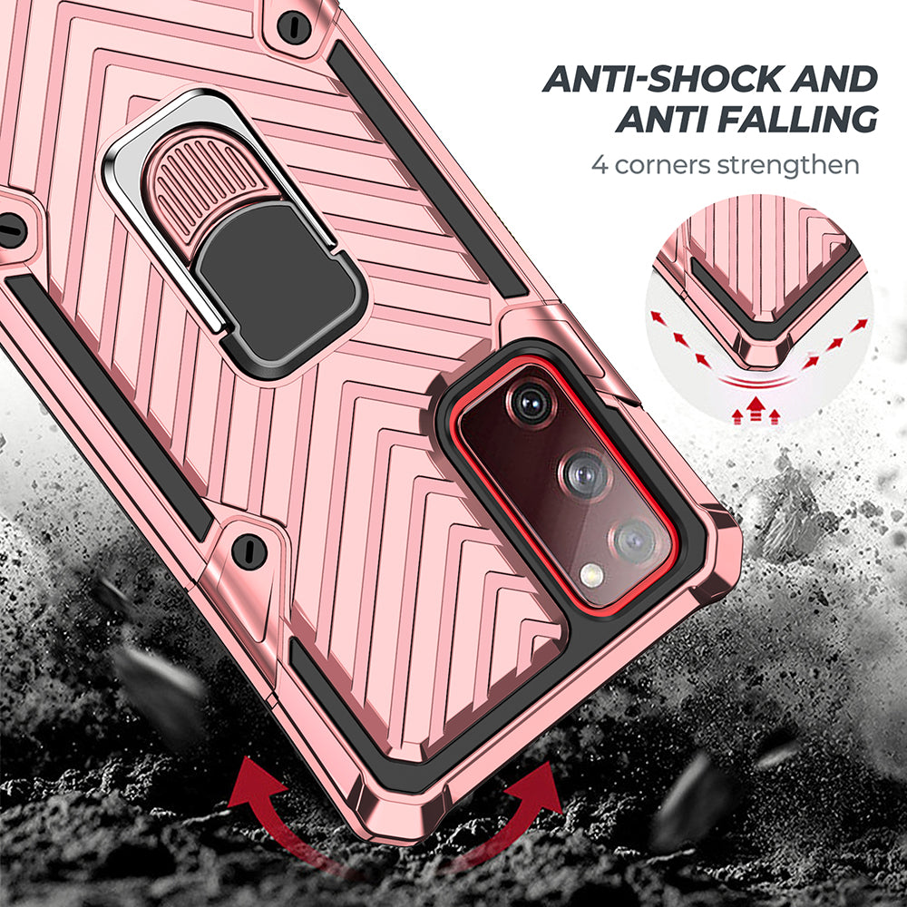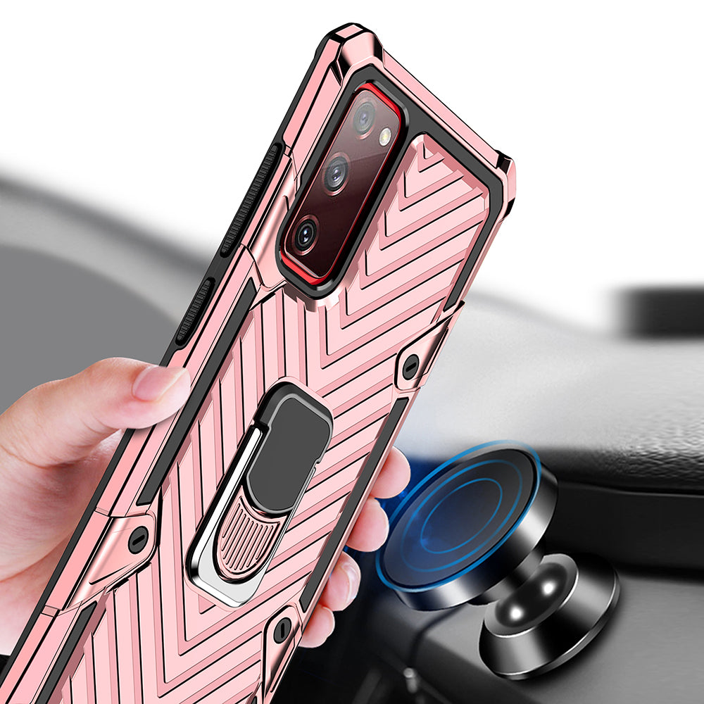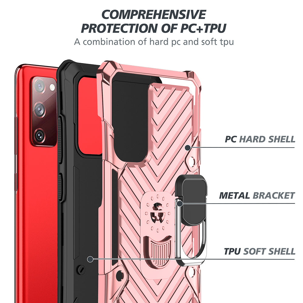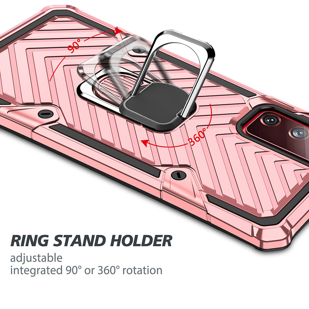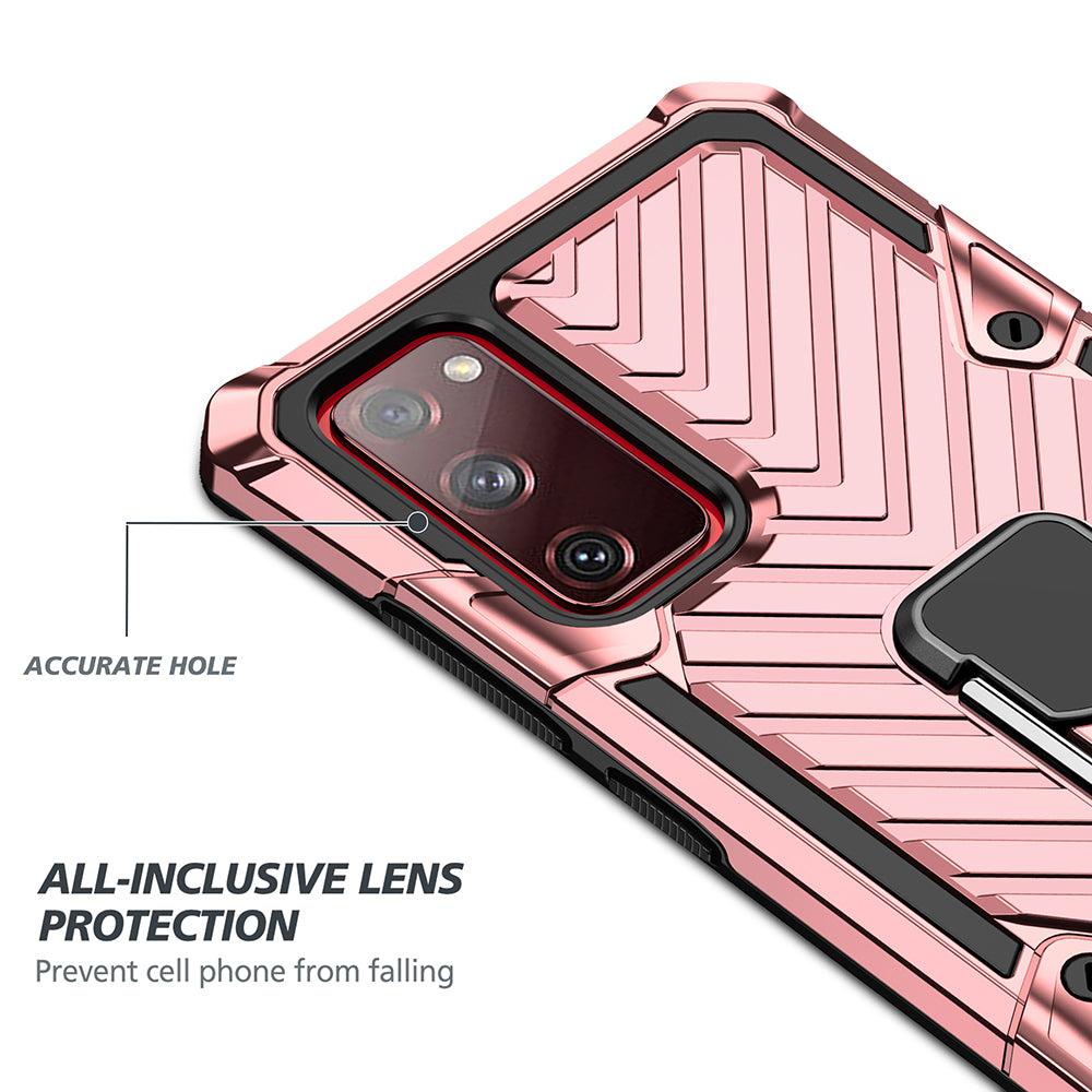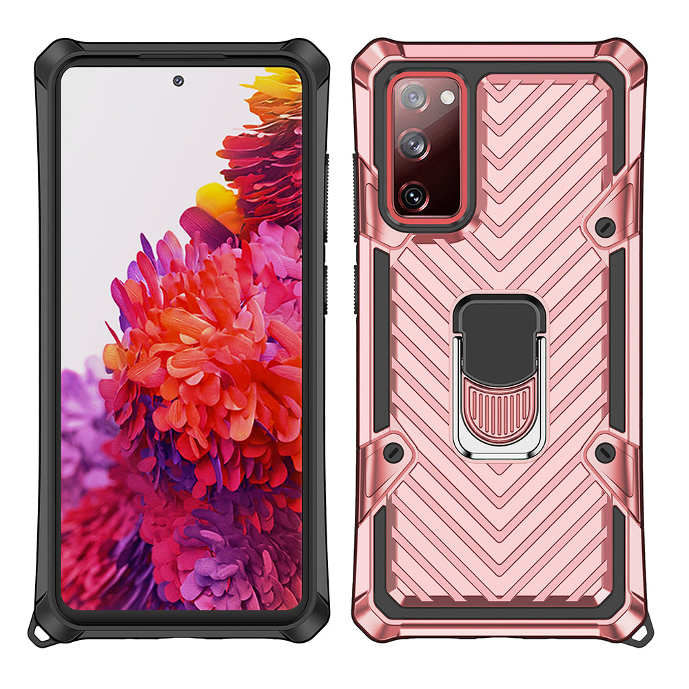 Rotatable Finger Ring Kickstand PC + TPU Hybrid Back Case for Samsung Galaxy S20 FE 4G/5G/2022/S20 Lite - Rose Gold