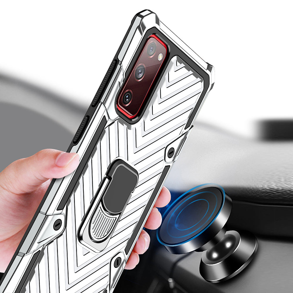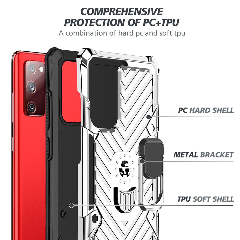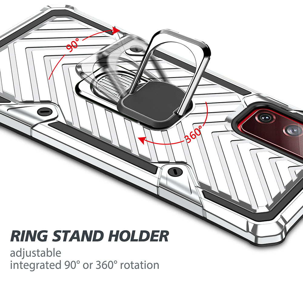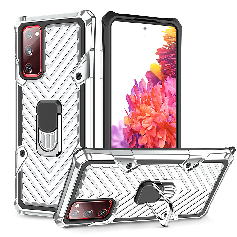 Rotatable Finger Ring Kickstand PC + TPU Hybrid Back Case for Samsung Galaxy S20 FE 4G/5G/2022/S20 Lite - Silver