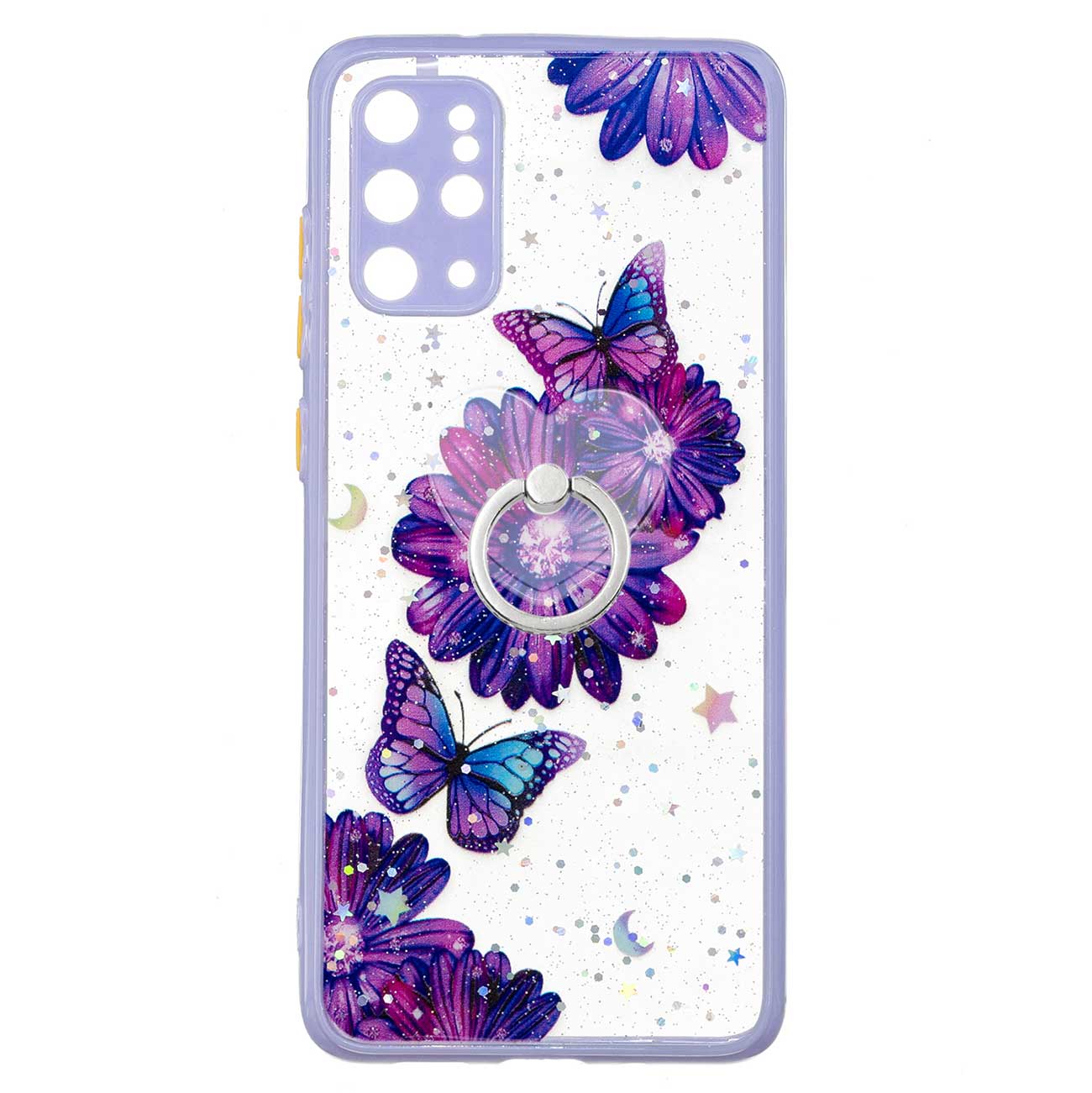 Rotatable Ring Kickstand TPU + PC Protective Cover Pattern Printing Epoxy Precise Cutout Case for Samsung Galaxy Plus 4G / 5G - Purple Flower Butterfly