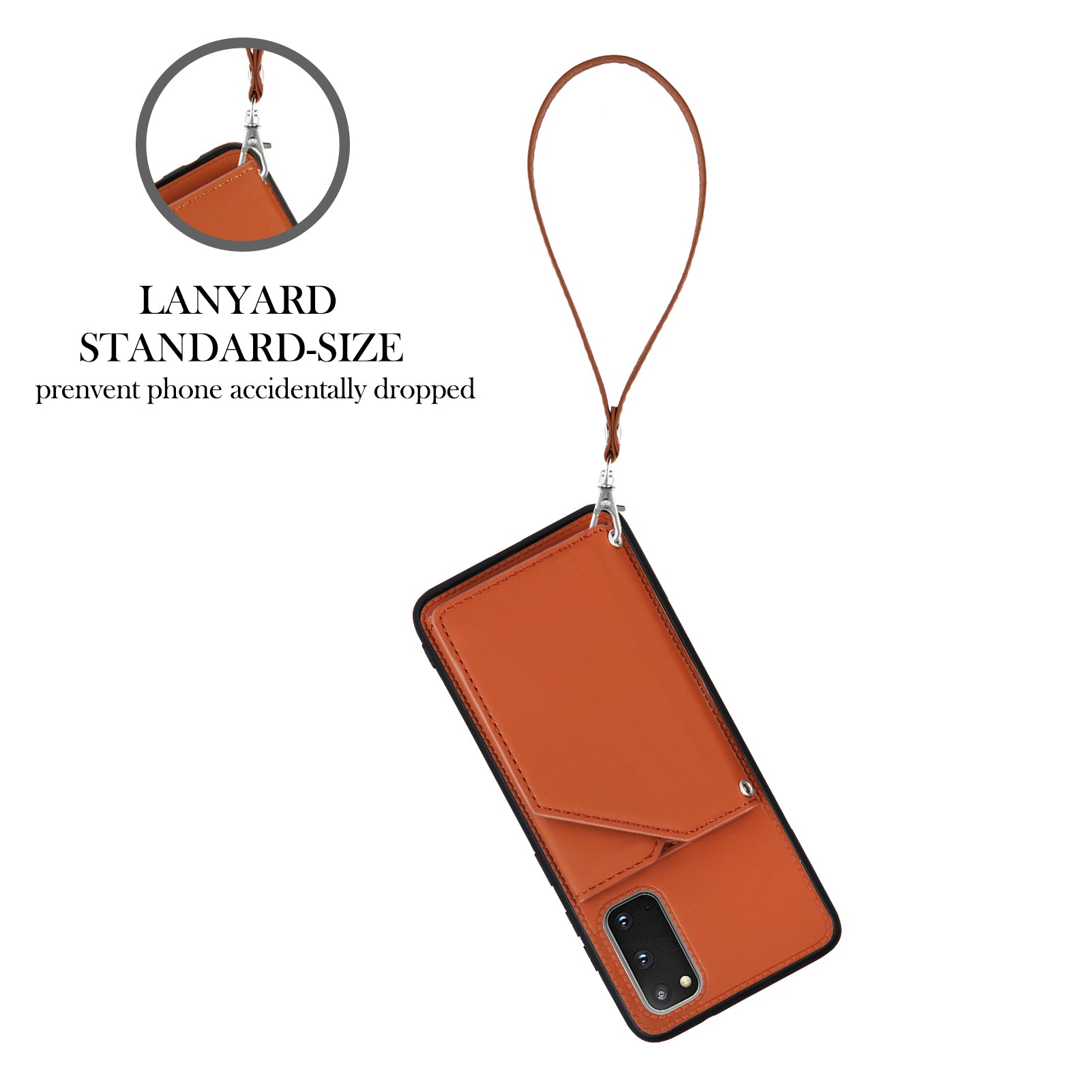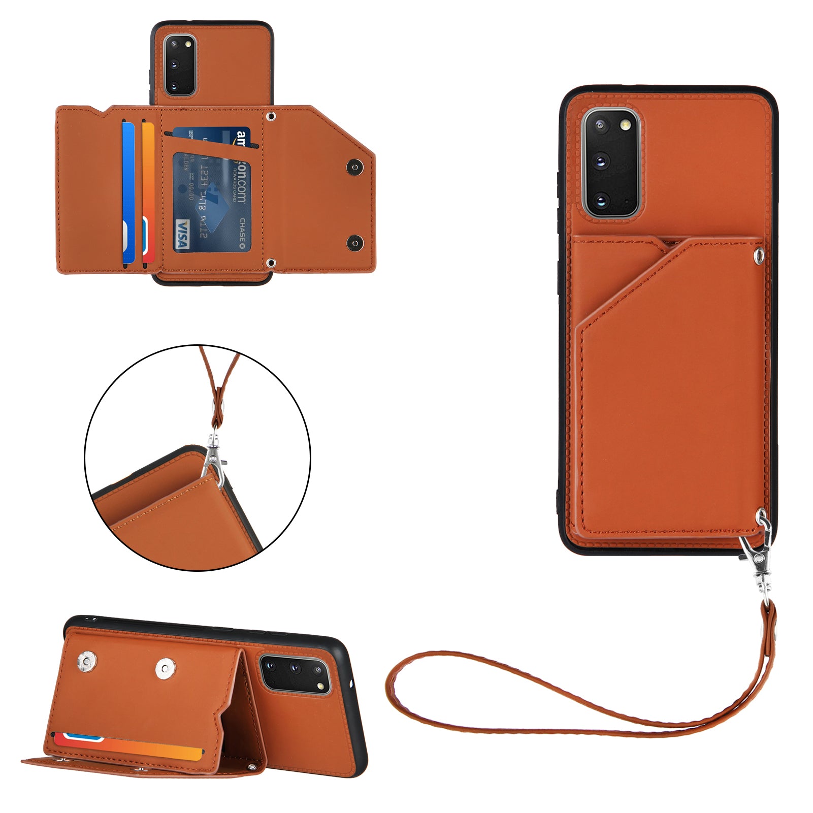 Rubberized Leather Skin Card Holder Design TPU Phone Case with Kickstand for Samsung Galaxy S20 4G/S20 5G - Brown