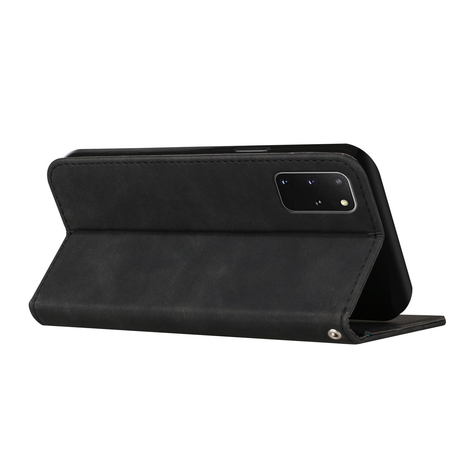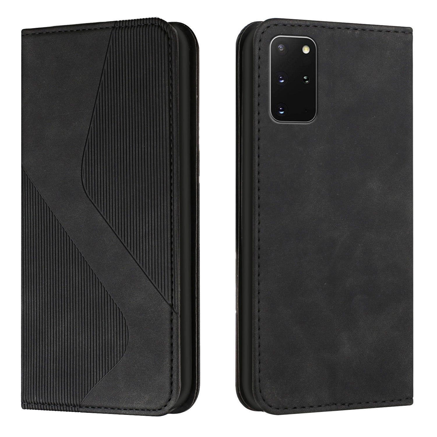 S-shaped Texture Auto-absorbed Drop-resistant Leather Wallet Stand Case for Samsung Galaxy S20 Plus 4G/5G - Black