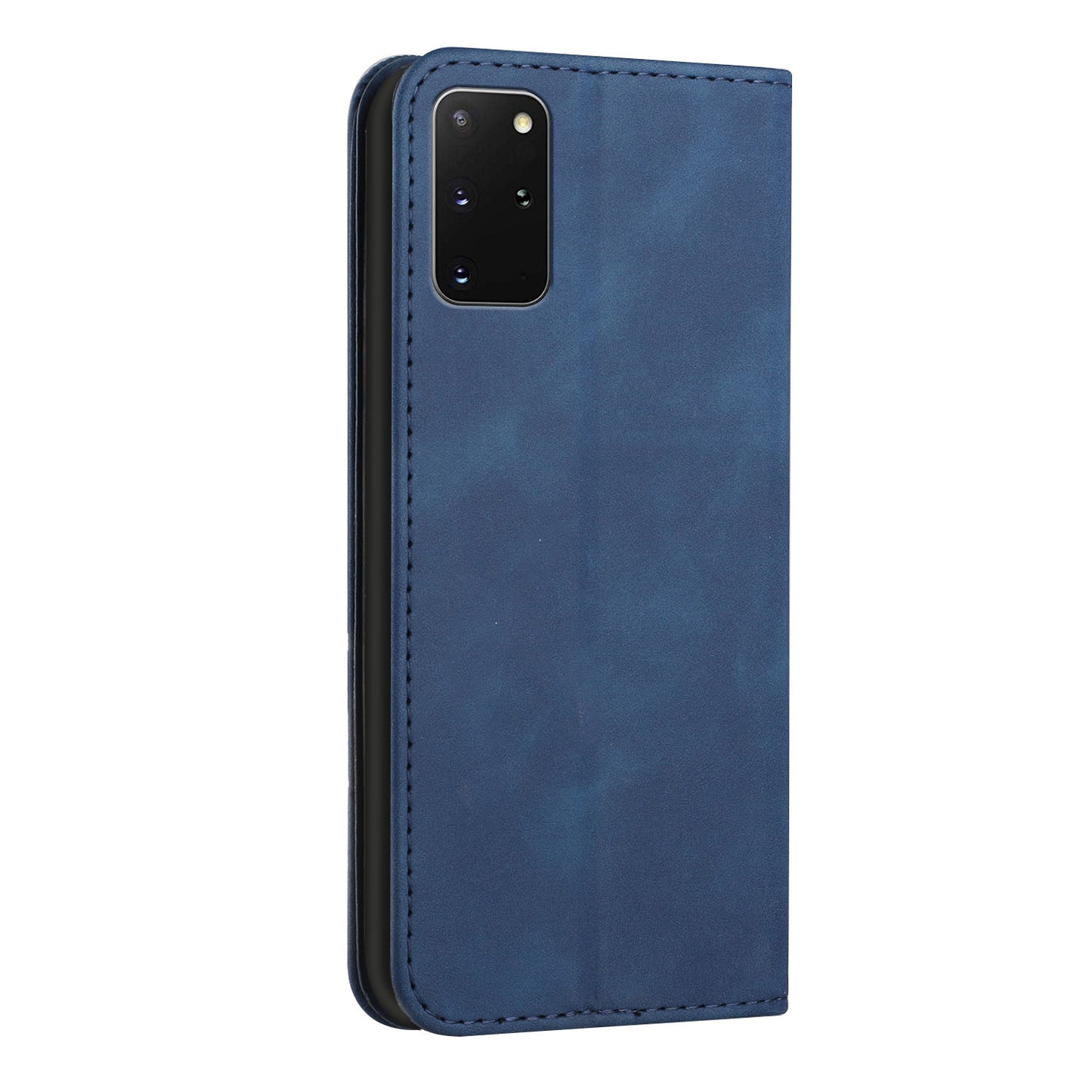 S-shaped Texture Auto-absorbed Drop-resistant Leather Wallet Stand Case for Samsung Galaxy S20 Plus 4G/5G - Blue
