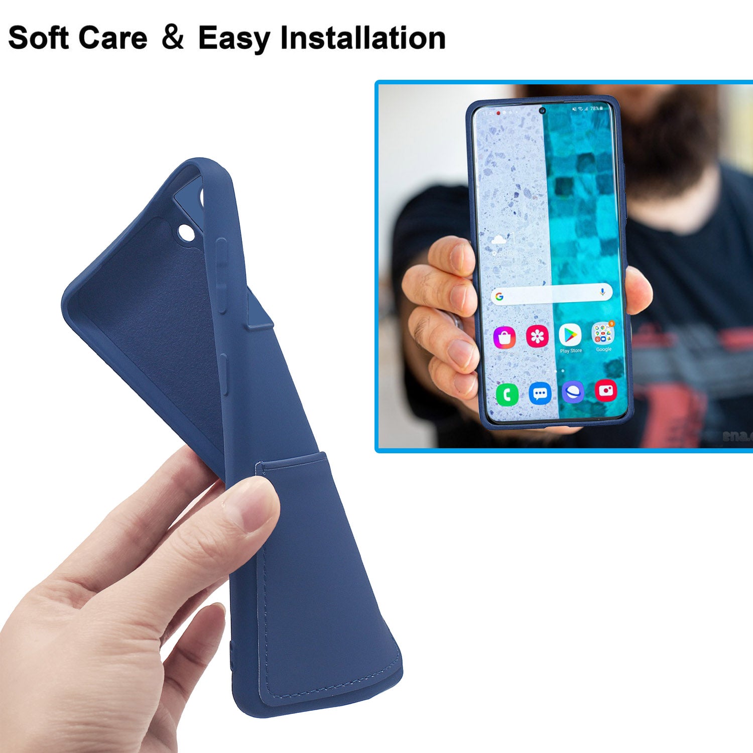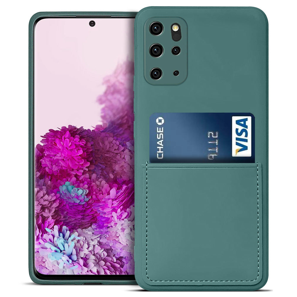 Scratch-resistant Liquid Silicone Case Card Slot Design Mobile Phone Shell for Samsung Galaxy S20 Plus 4G/5G - Blackish Green