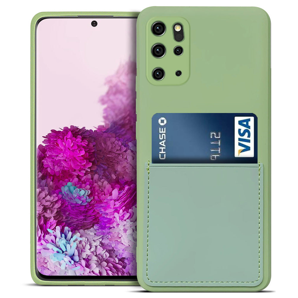 Scratch-resistant Liquid Silicone Case Card Slot Design Mobile Phone Shell for Samsung Galaxy S20 Plus 4G/5G - Matcha Green