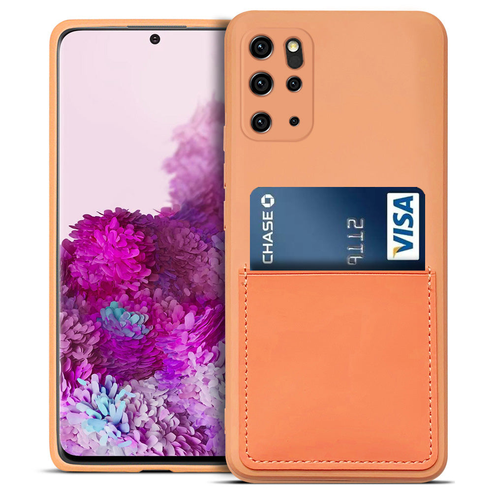 Scratch-resistant Liquid Silicone Case Card Slot Design Mobile Phone Shell for Samsung Galaxy S20 Plus 4G/5G - Orange