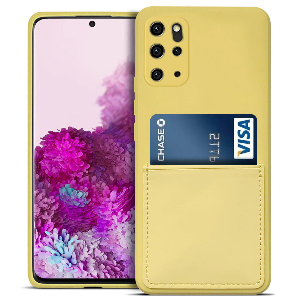Scratch-resistant Liquid Silicone Case Card Slot Design Mobile Phone Shell for Samsung Galaxy S20 Plus 4G/5G - Yellow