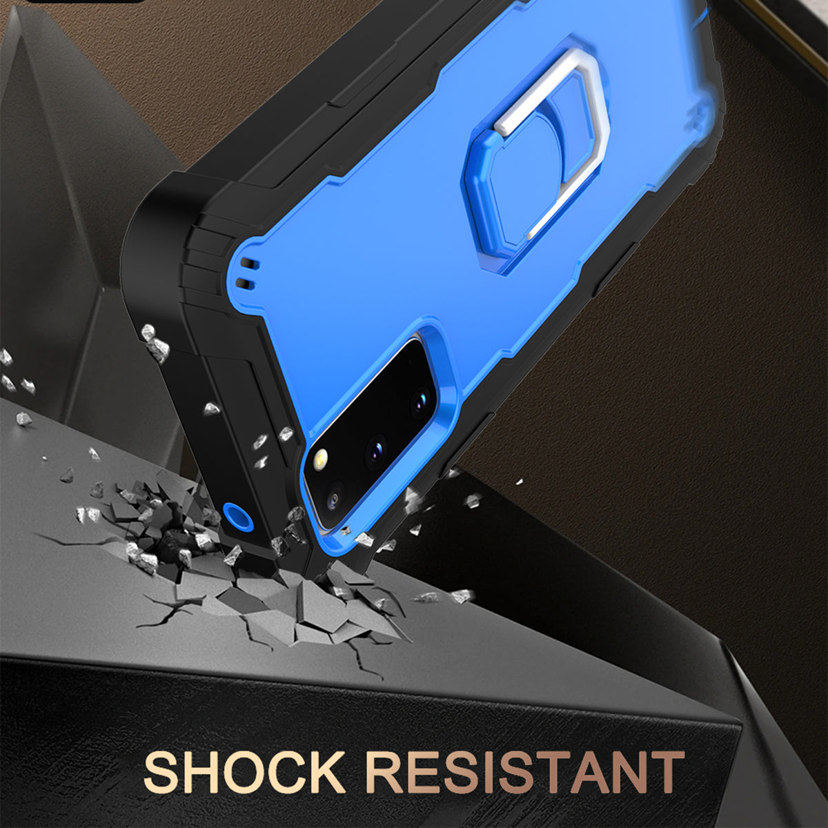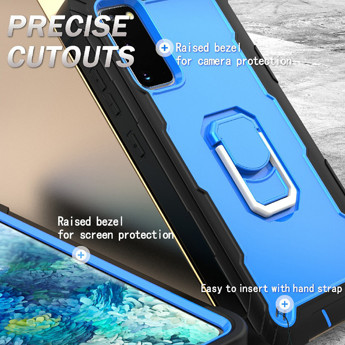 Shockproof PC + Silicone Phone Case with Built-in Kickstand Design for Samsung Galaxy S20 FE/S20 Fan Edition/S20 FE 5G/S20 Fan Edition 5G/S20 Lite/S20 FE 2022 - Black/Blue