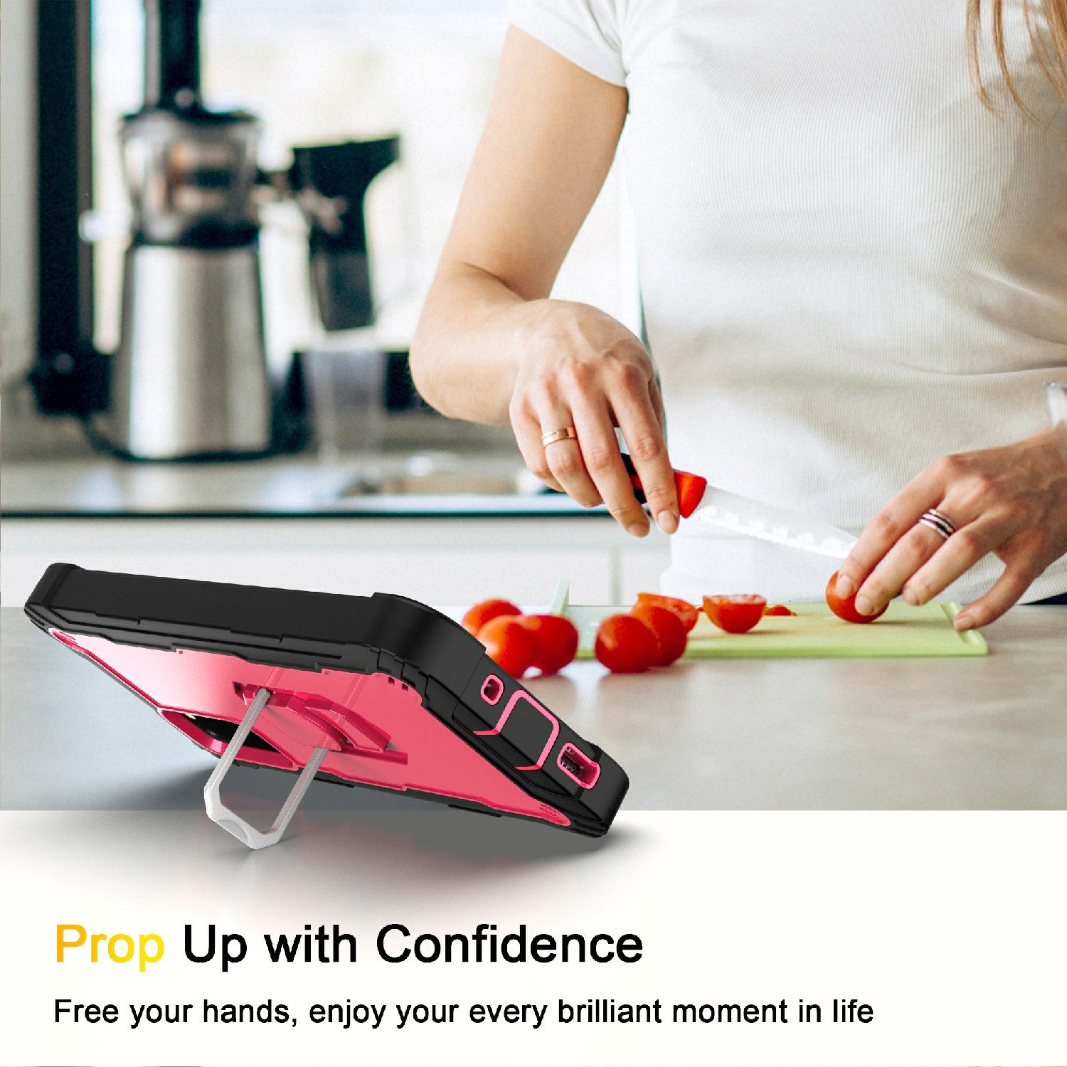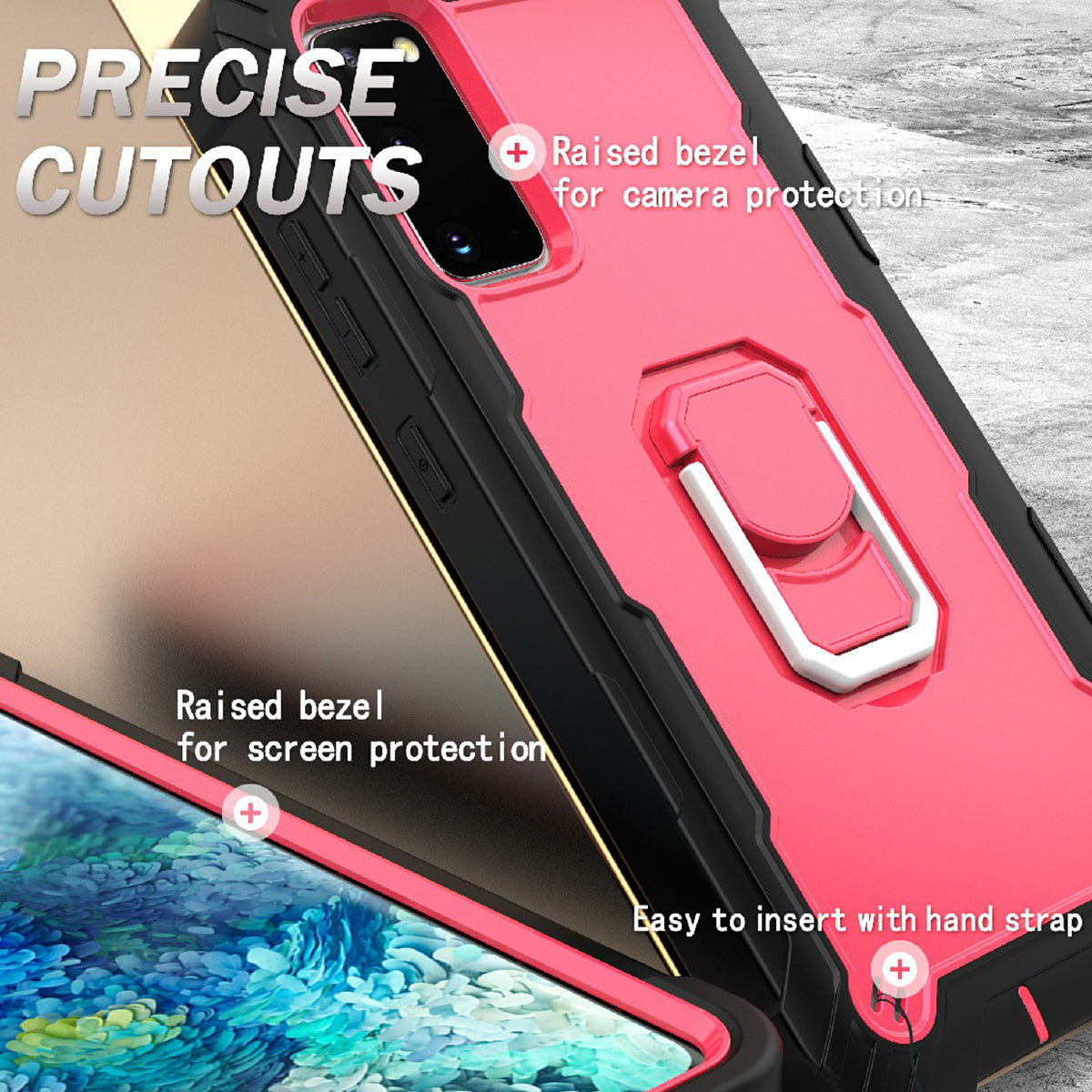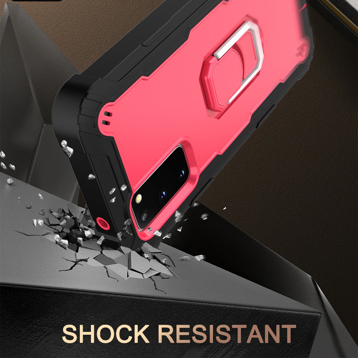 Shockproof PC + Silicone Phone Case with Built-in Kickstand Design for Samsung Galaxy S20 FE/S20 Fan Edition/S20 FE 5G/S20 Fan Edition 5G/S20 Lite/S20 FE 2022 - Black/Rose Red