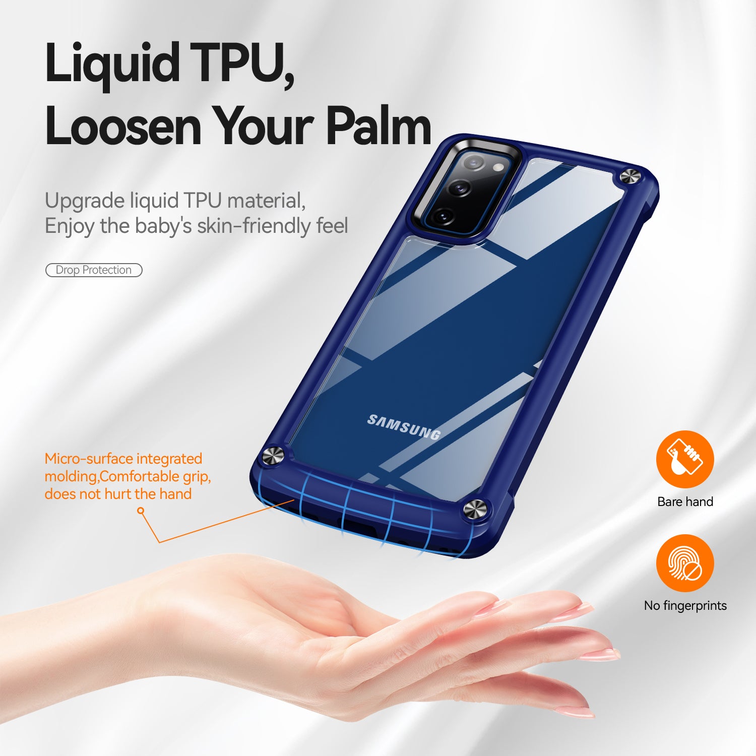 Shockproof Phone Case for Samsung Galaxy S20 FE 2022/S20 FE 4G/5G/S20 Lite, Full Body Protection PC+TPU Hybrid Phone Shell Case with Strap - Blue/Black