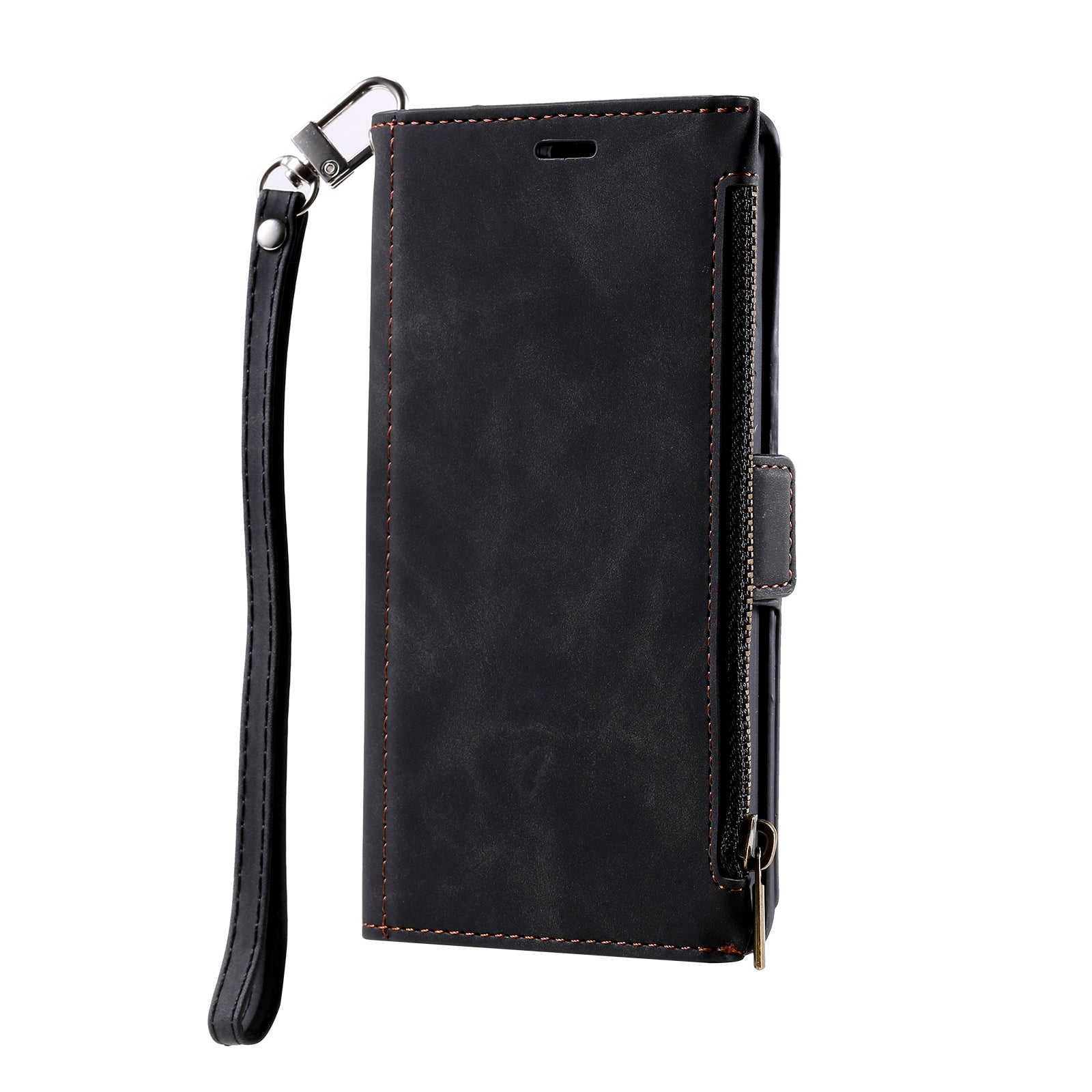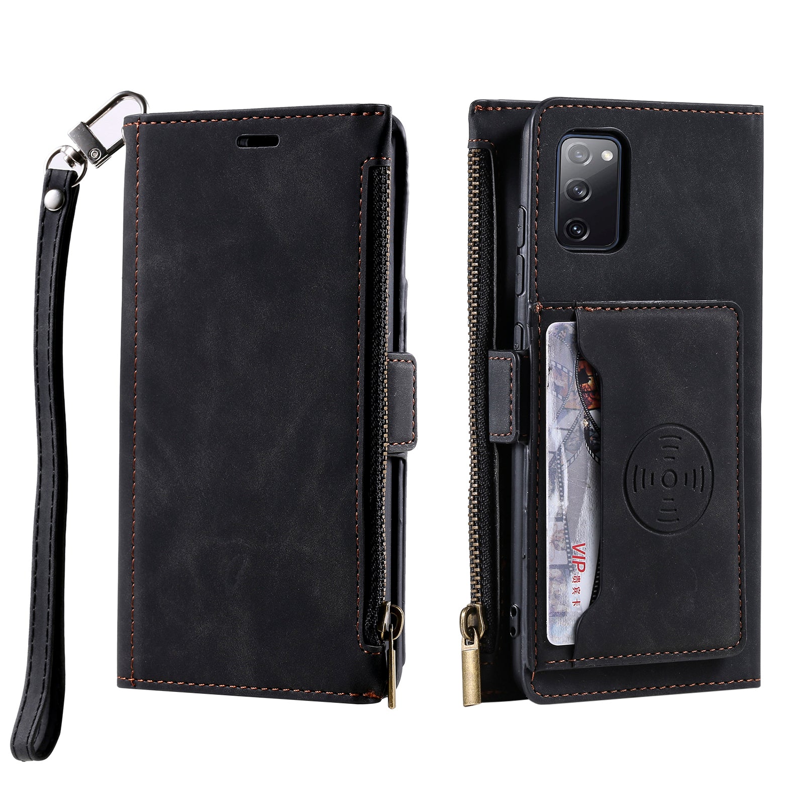 Shockproof PU Leather Zipper Pocket Flip Kickstand Wallet Case with Wrist Strap for Samsung Galaxy S20 FE 2022/S20 FE 4G/S20 FE 5G/S20 Lite - Black