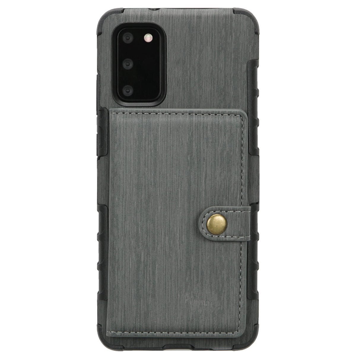 SHOUHUSHEN Brushed with Card Slots PU Leather Coated Hard PC Shell for Samsung Galaxy S20 4G/S20 5G - Grey