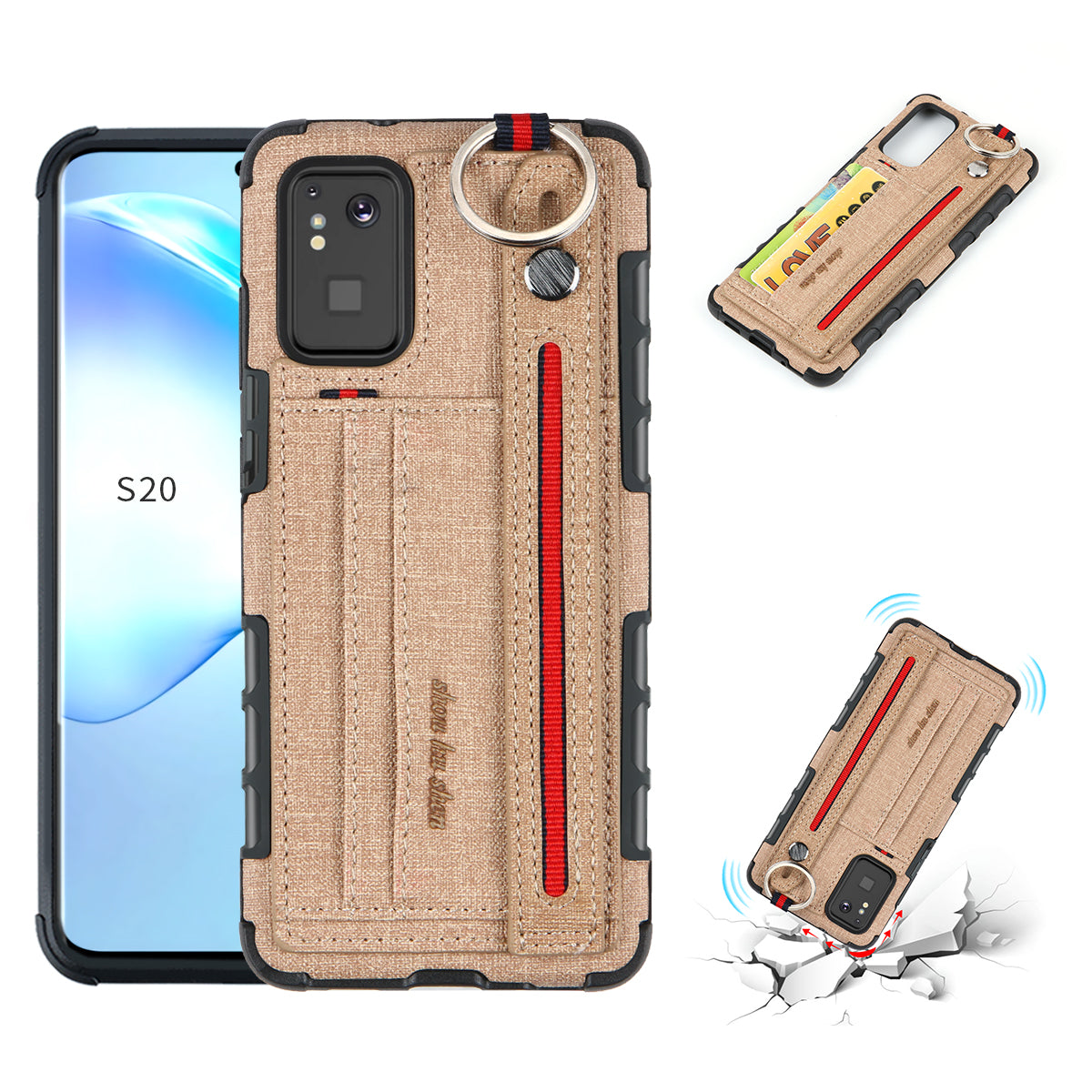 SHOUHUSHEN Cloth Coated Hybrid Case with Card Slot for Samsung Galaxy S20 Plus - Khaki