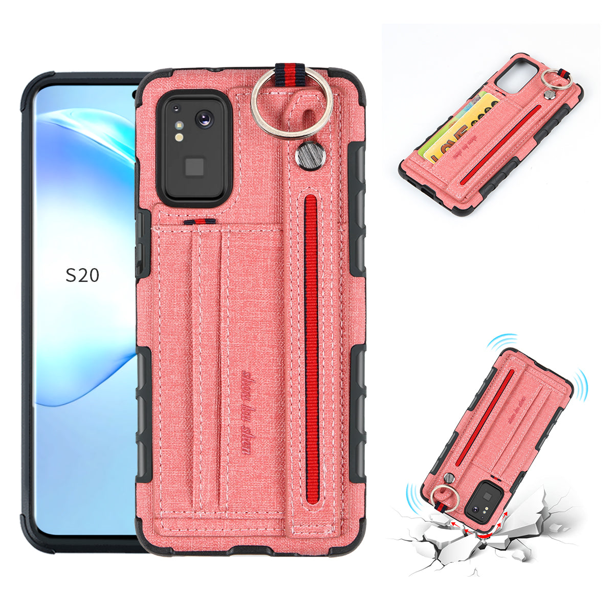 SHOUHUSHEN Cloth Coated Hybrid Case with Card Slot for Samsung Galaxy S20 Plus - Pink
