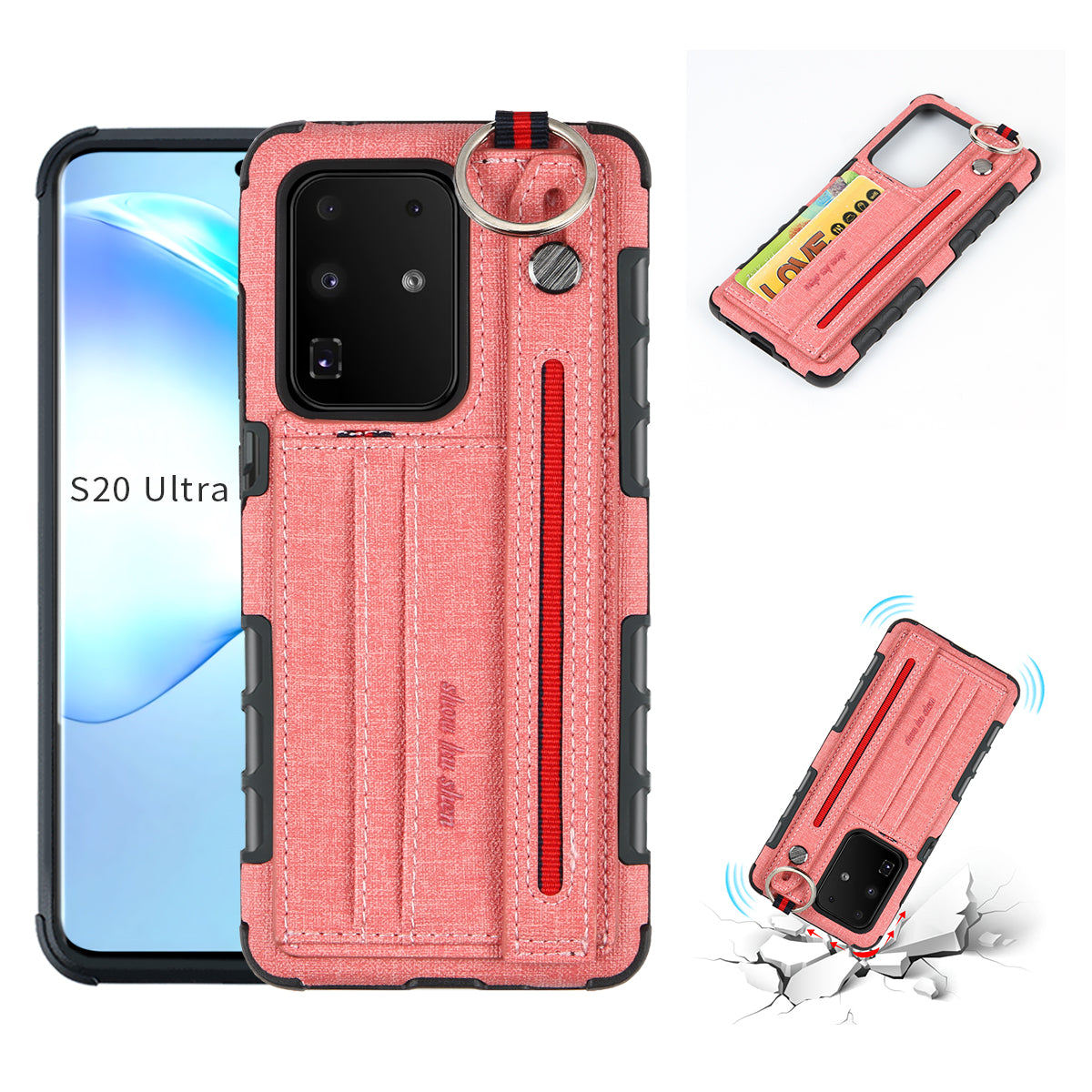 SHOUHUSHEN Cloth Coated Hybrid Shell with Card Slot for Samsung Galaxy S20 Ultra - Pink
