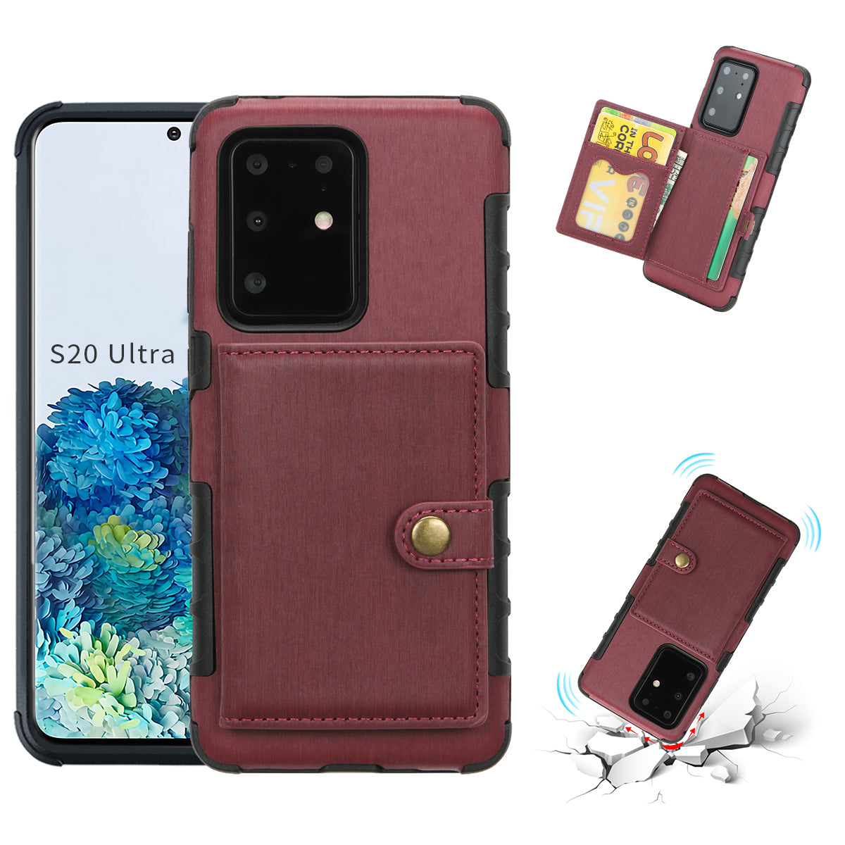SHOUHUSHEN Cover PU Leather Coated Hard PC Case for Samsung Galaxy S20 Ultra - Wine Red