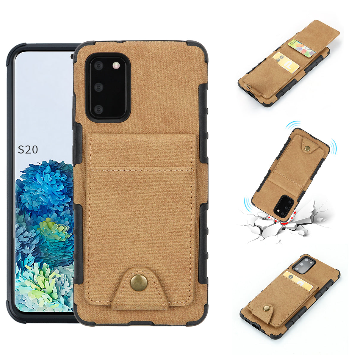 SHOUHUSHEN Leather Coated TPU Card Holder Case for Samsung Galaxy S20 4G/S20 5G - Khaki