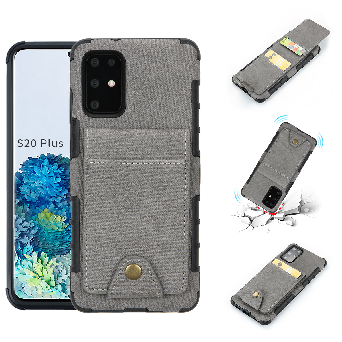 SHOUHUSHEN Leather Coated TPU Case with Card Slots for Samsung Galaxy S20 Plus - Grey