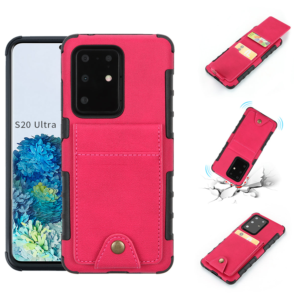 SHOUHUSHEN Leather Coated TPU Shell Case with Card Slots for Samsung Galaxy S20 Ultra - Rose