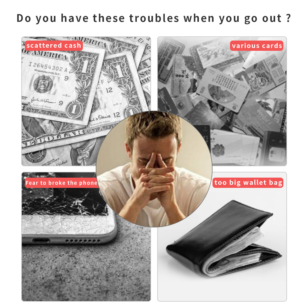 •Built-in ID/credit card slots and cash compartment with metal snap-on closure