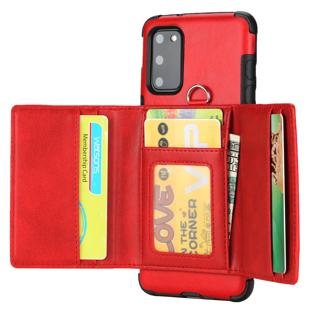 •Built-in ID/credit card slots and cash compartment with metal snap-on closure