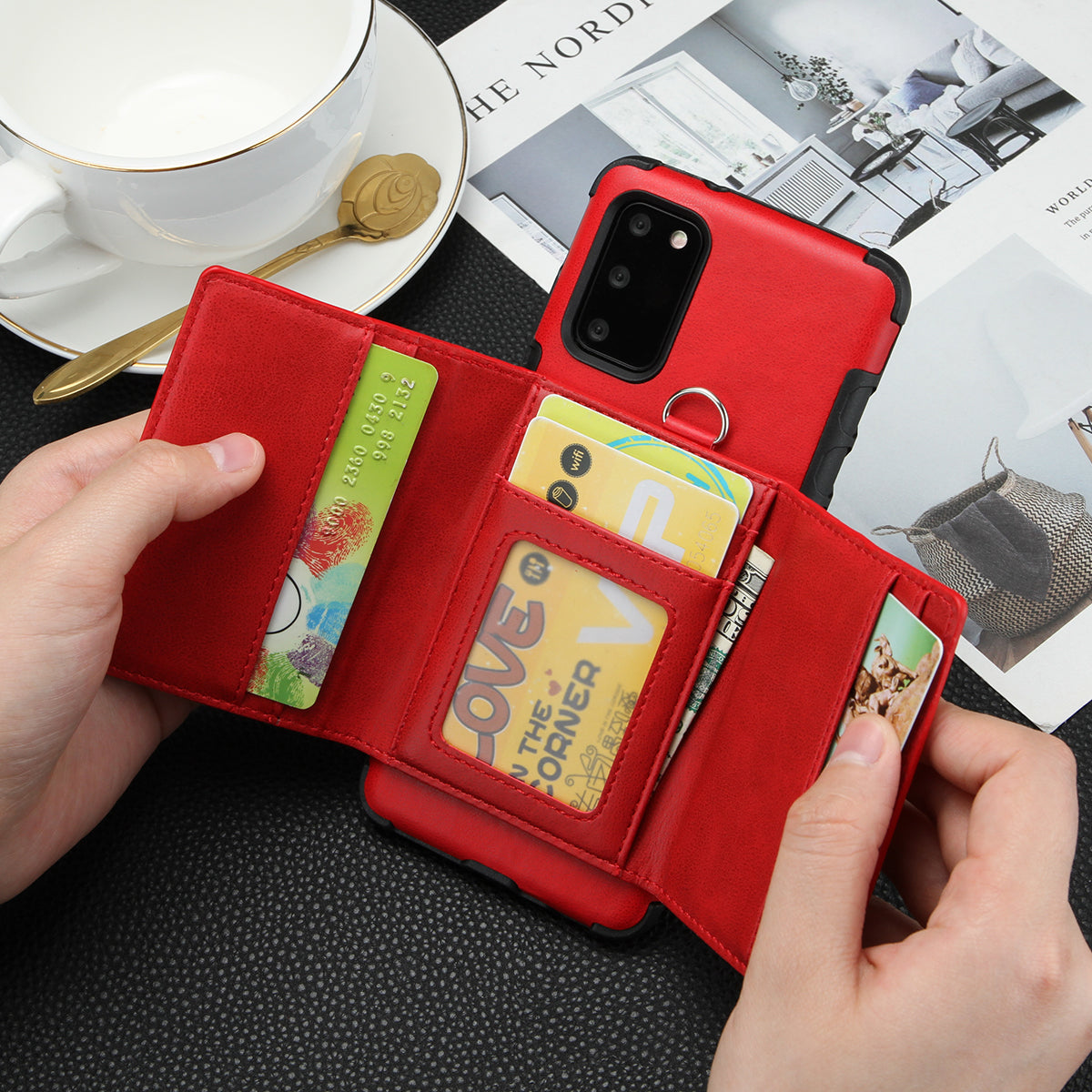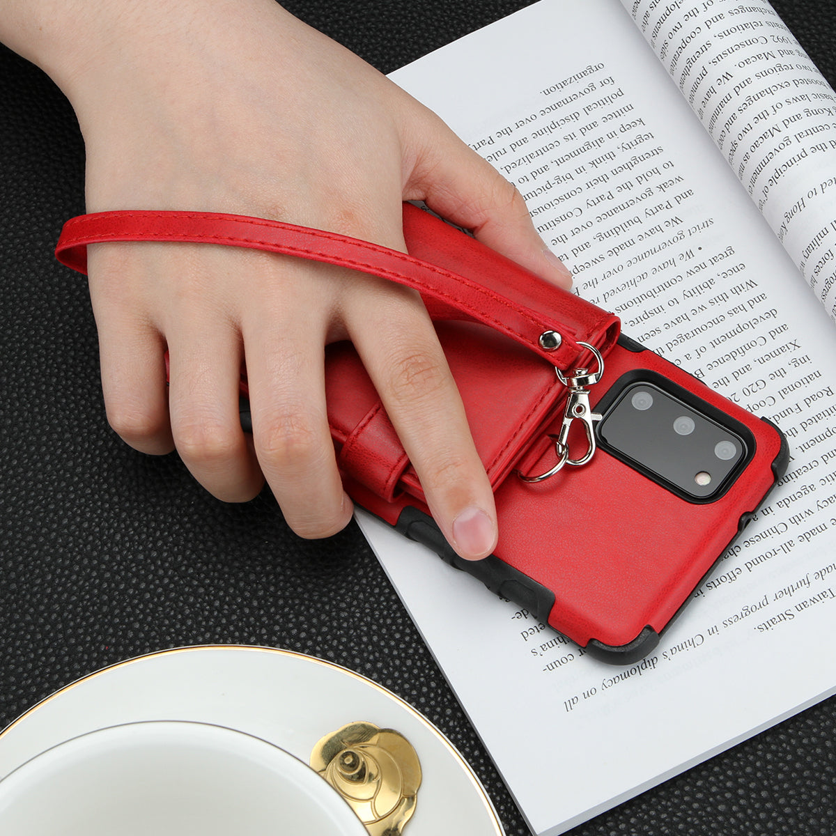 •PU leather coated PC + TPU hybrid case