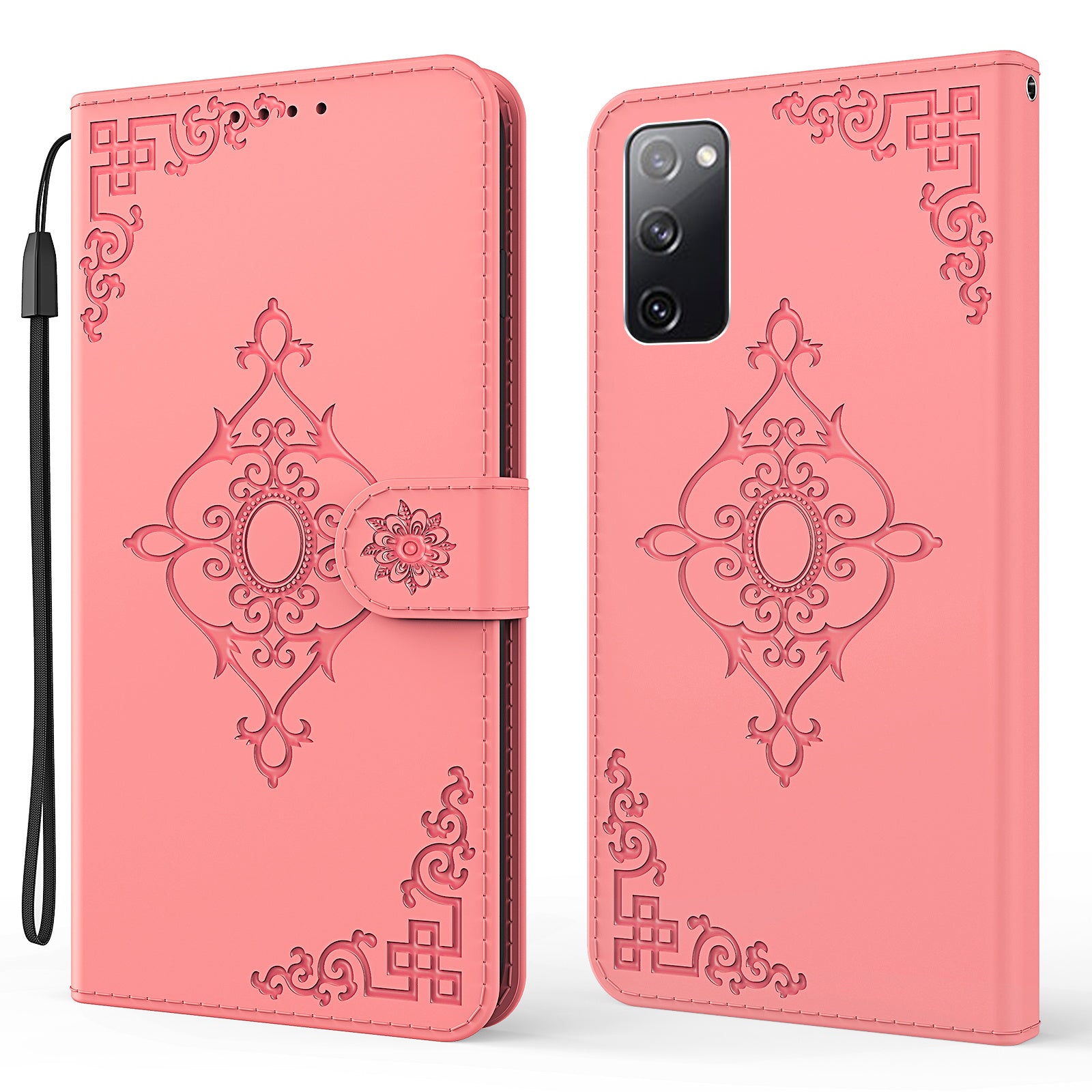 Symmetrical Pattern Imprinting Wallet Leather Phone Stand Protector for Samsung Galaxy S20 FE/S20 Fan Edition/S20 FE 5G/S20 Fan Edition 5G - Pink