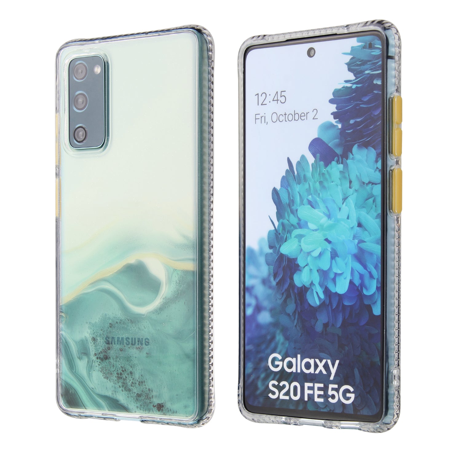 TPU + Acylic Marble Pattern Printing Phone Cover Case for Samsung Galaxy S20 FE/S20 Fan Edition/S20 FE 5G/S20 Fan Edition 5G/S20 Lite - Green