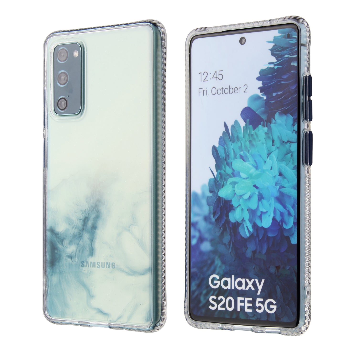 TPU + Acylic Marble Pattern Printing Phone Cover Case for Samsung Galaxy S20 FE/S20 Fan Edition/S20 FE 5G/S20 Fan Edition 5G/S20 Lite - Lake Blue