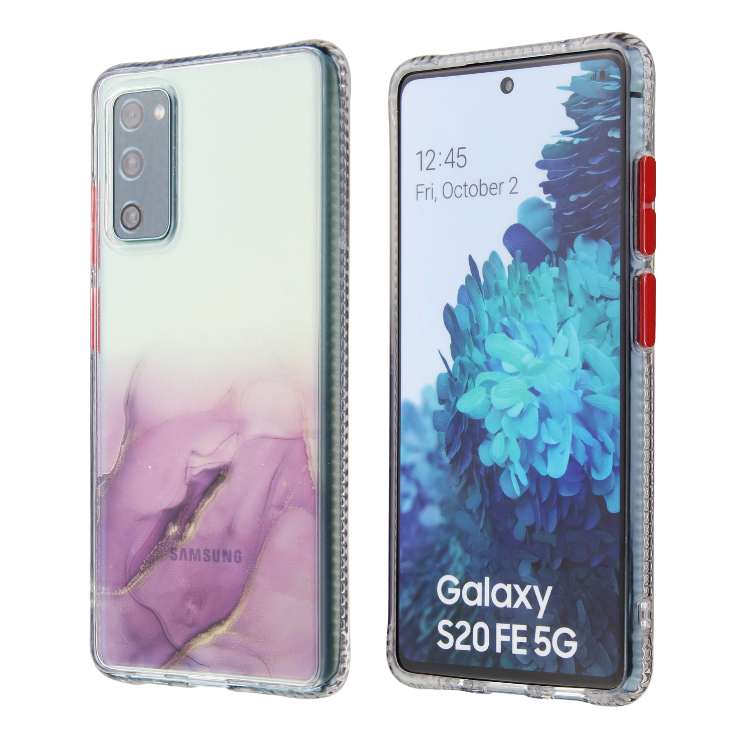 TPU + Acylic Marble Pattern Printing Phone Cover Case for Samsung Galaxy S20 FE/S20 Fan Edition/S20 FE 5G/S20 Fan Edition 5G/S20 Lite - Purple