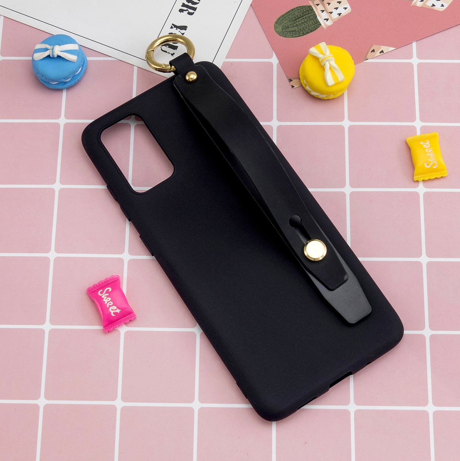 TPU Cell Phone Back Case with Wrist Strap Kickstand for Samsung Galaxy S20 Plus / S20 Plus 5G - Black