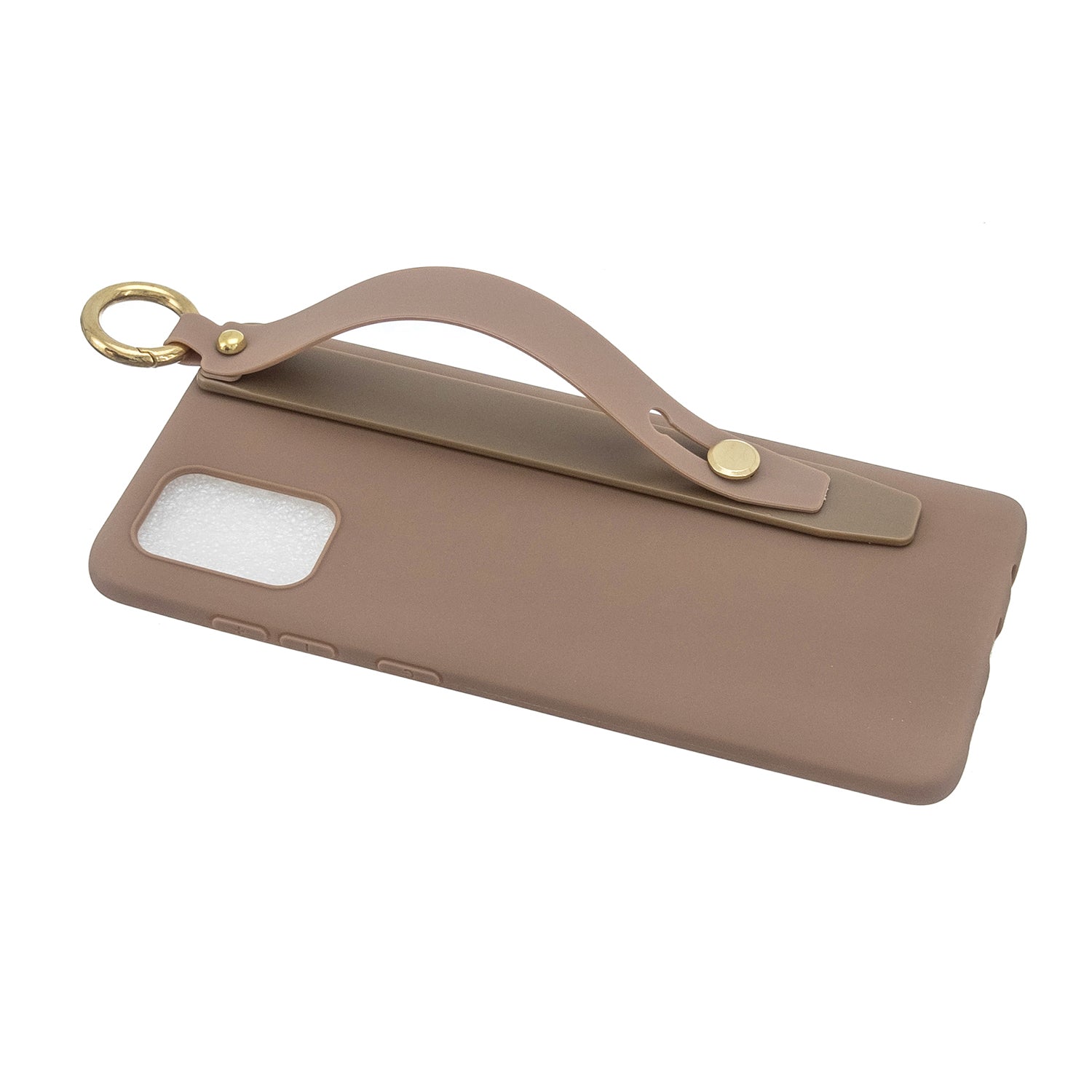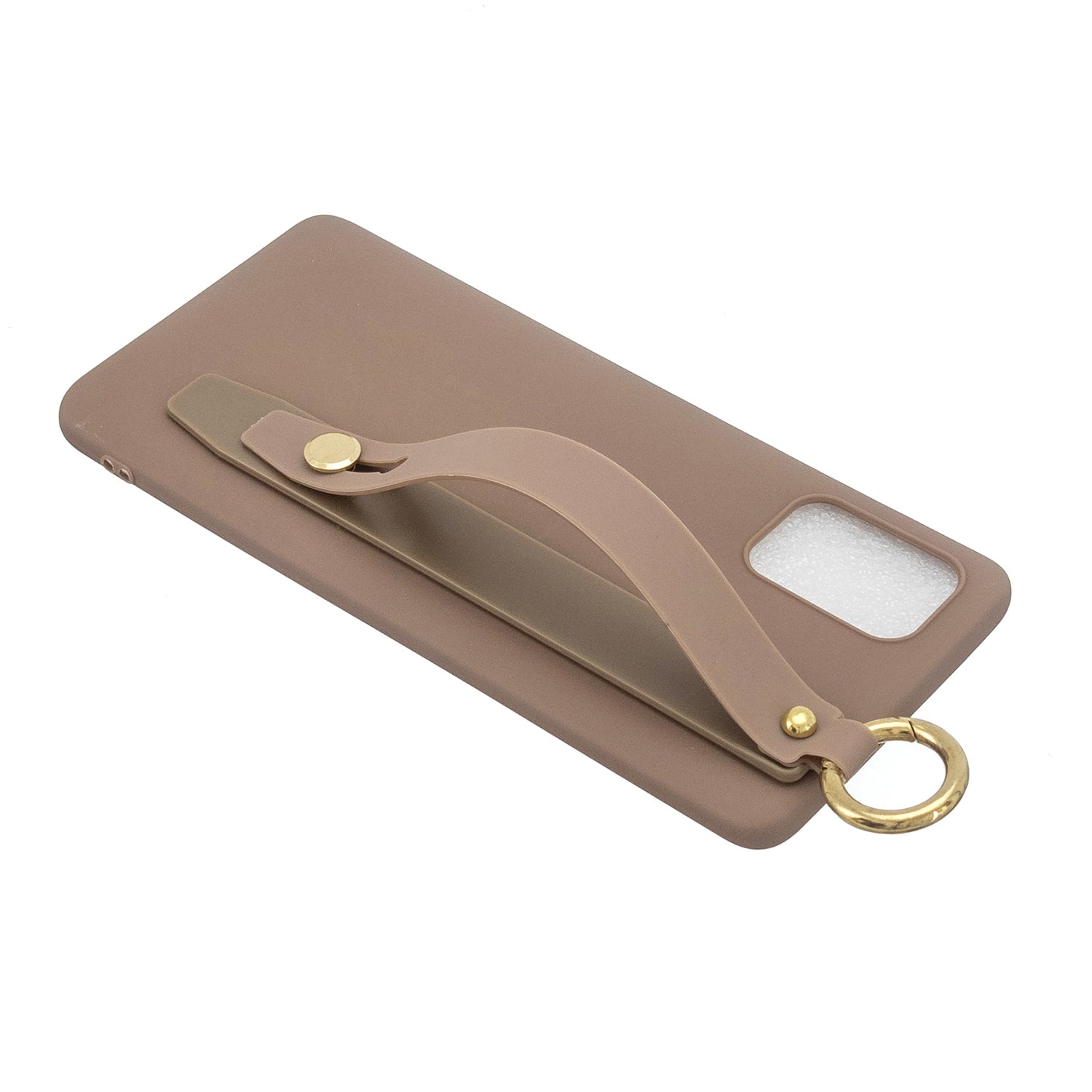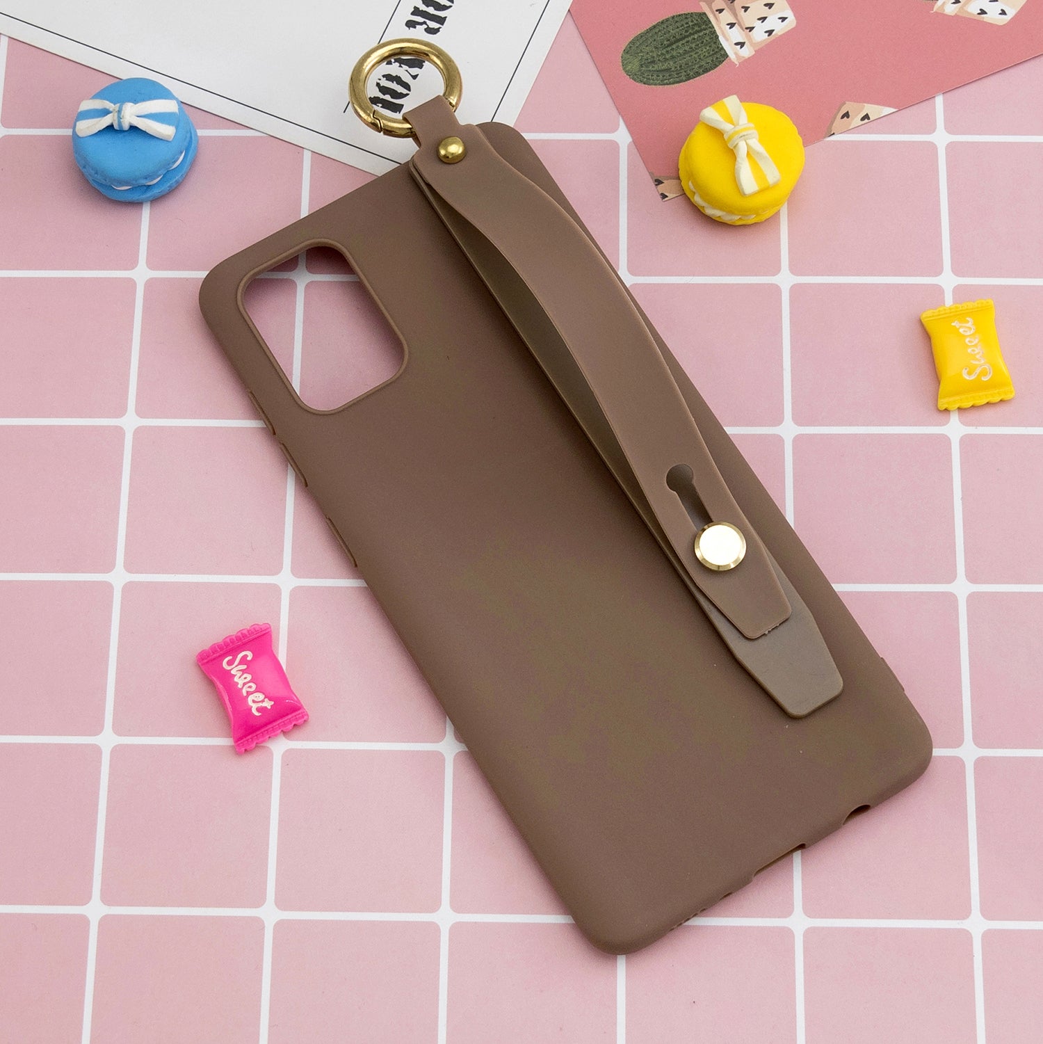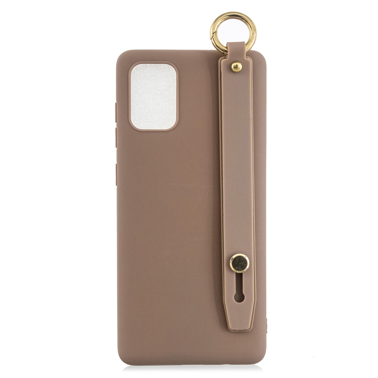 TPU Cell Phone Back Case with Wrist Strap Kickstand for Samsung Galaxy S20 Plus / S20 Plus 5G - Brown