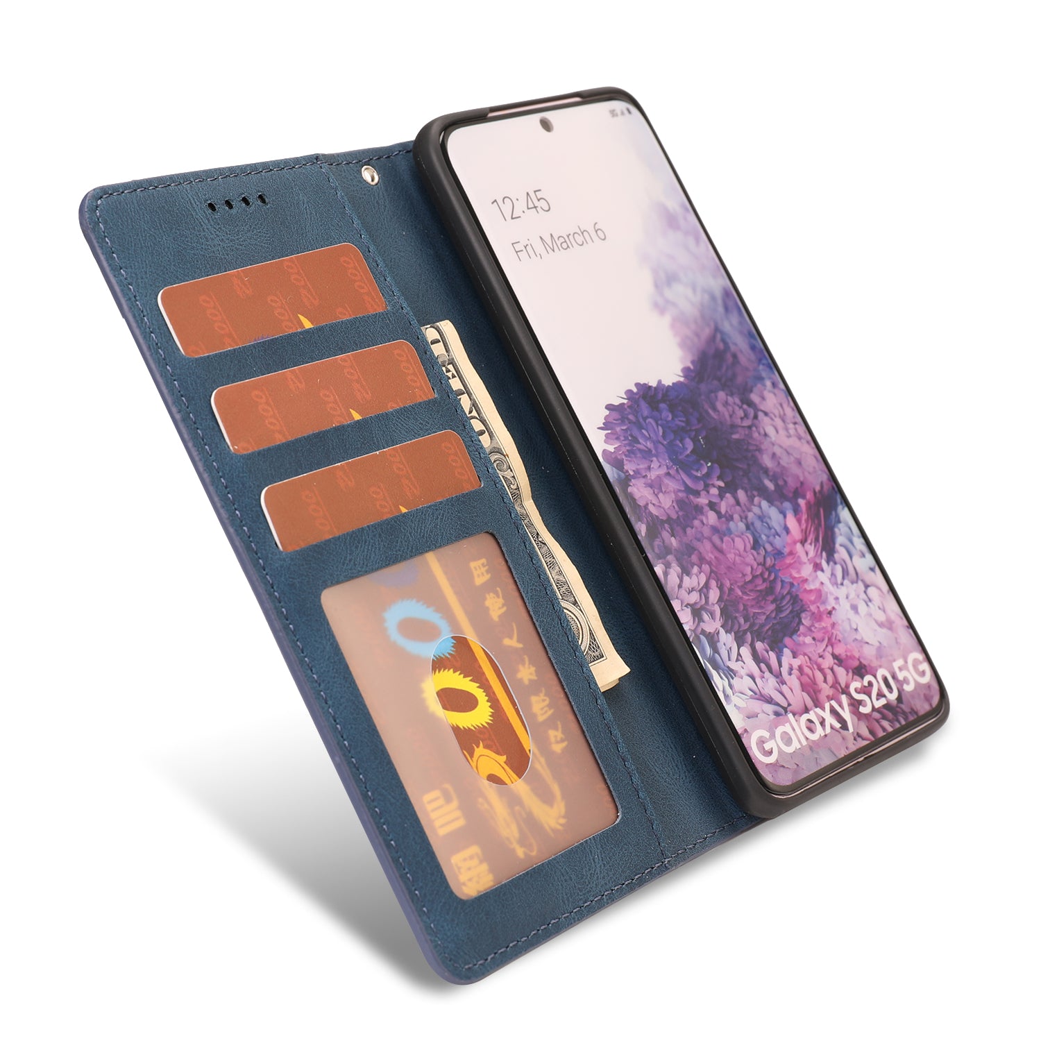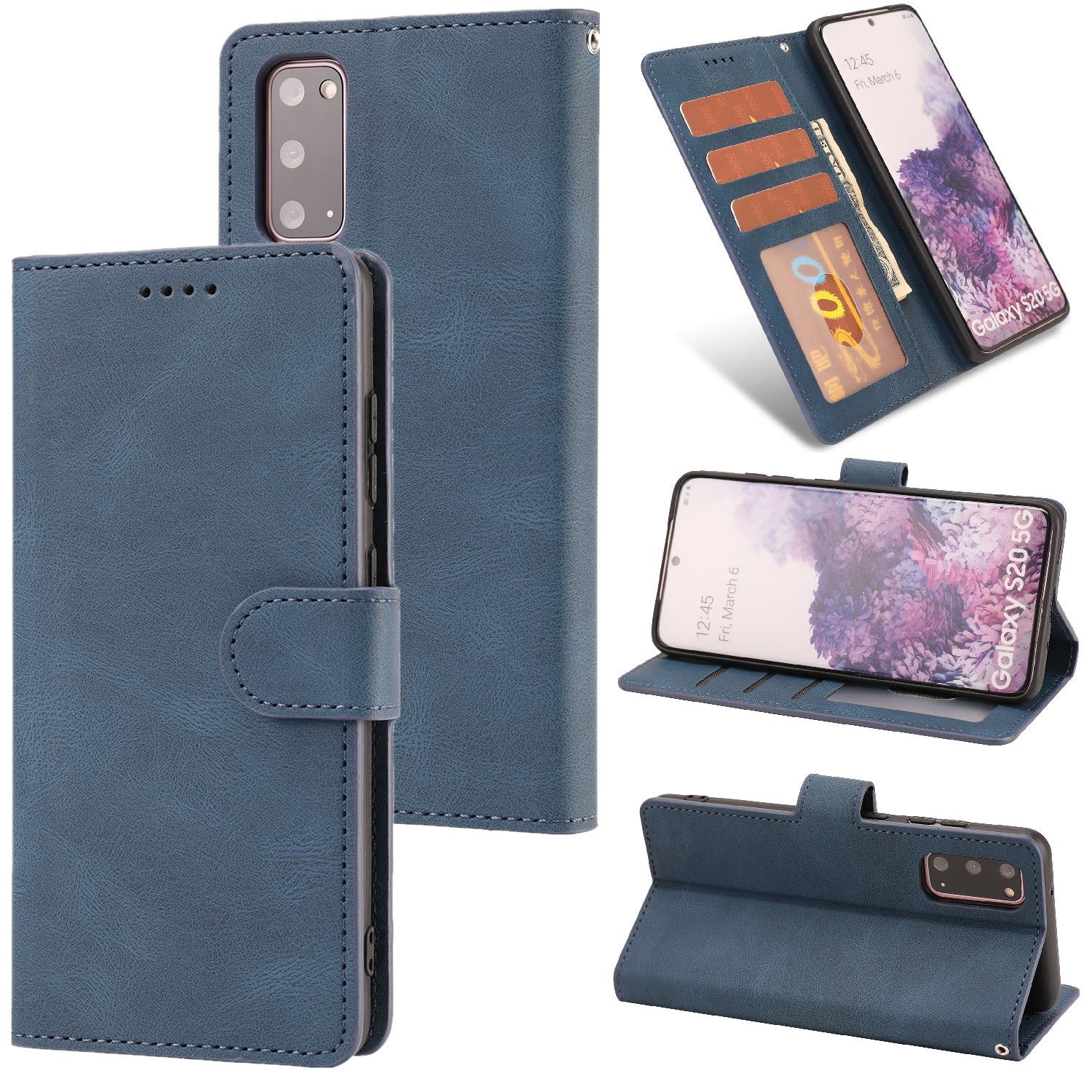 TPU + PU Leather Phone Protective Shell with Wallet and Stand for Samsung Galaxy S20 4G/S20 5G - Blue