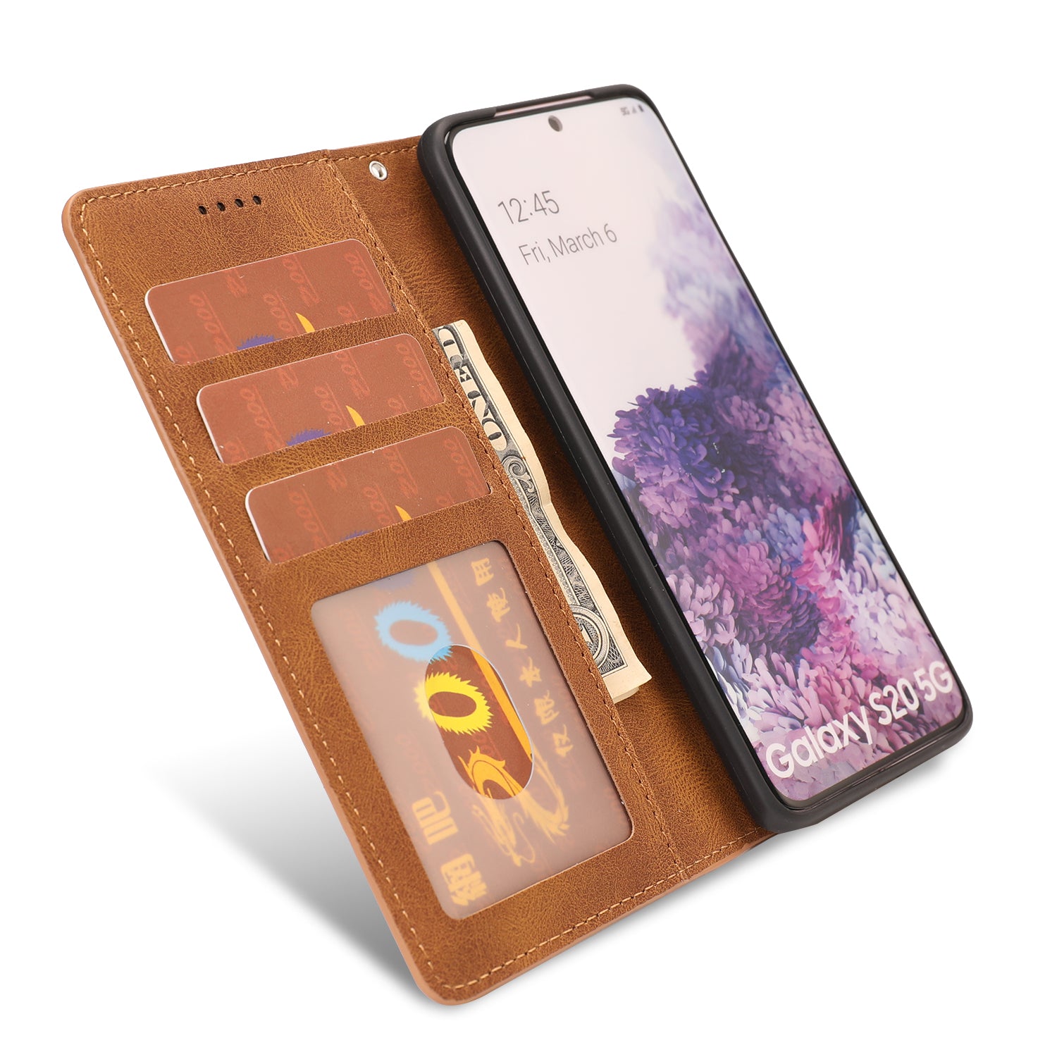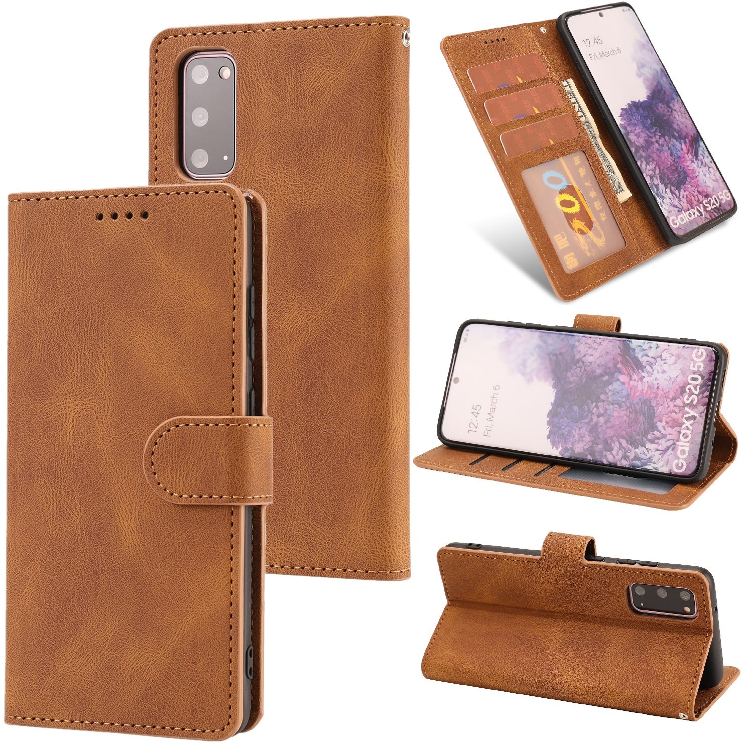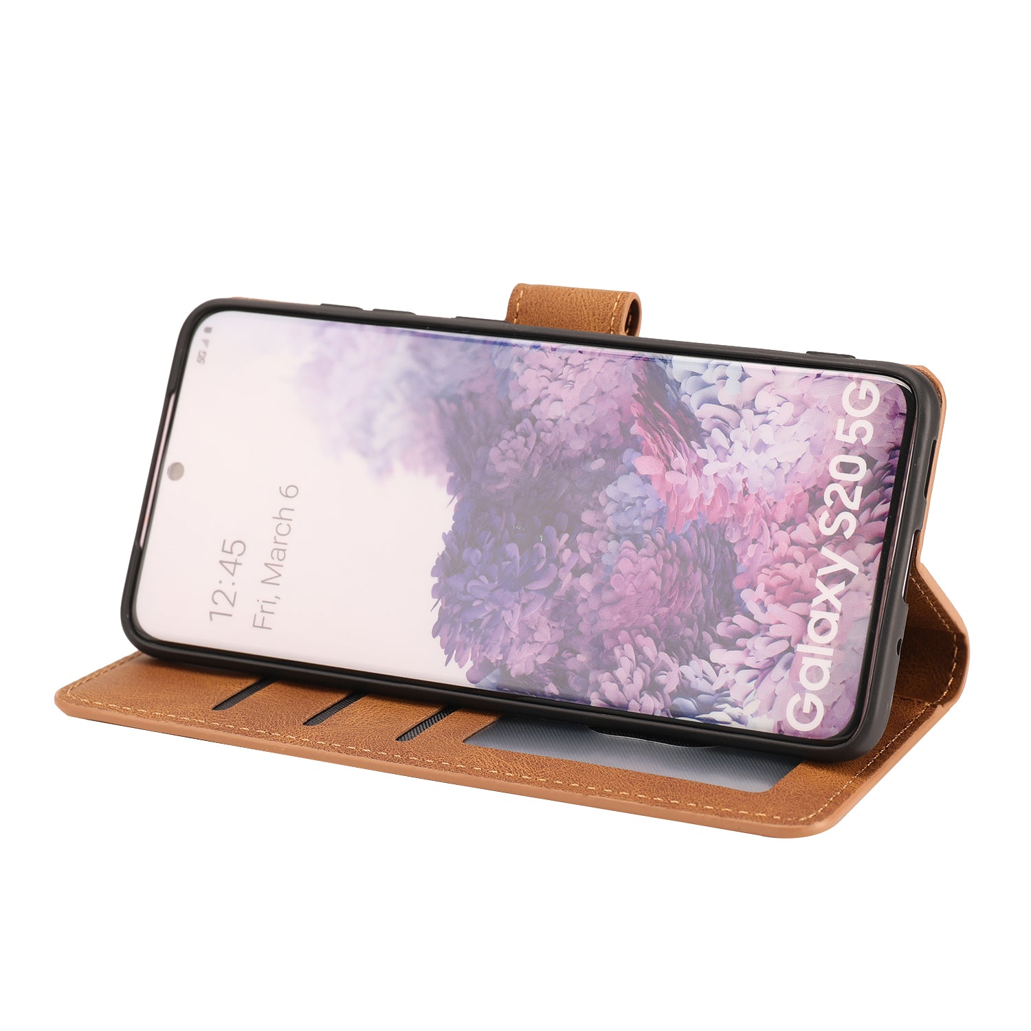 TPU + PU Leather Phone Protective Shell with Wallet and Stand for Samsung Galaxy S20 4G/S20 5G - Light Brown