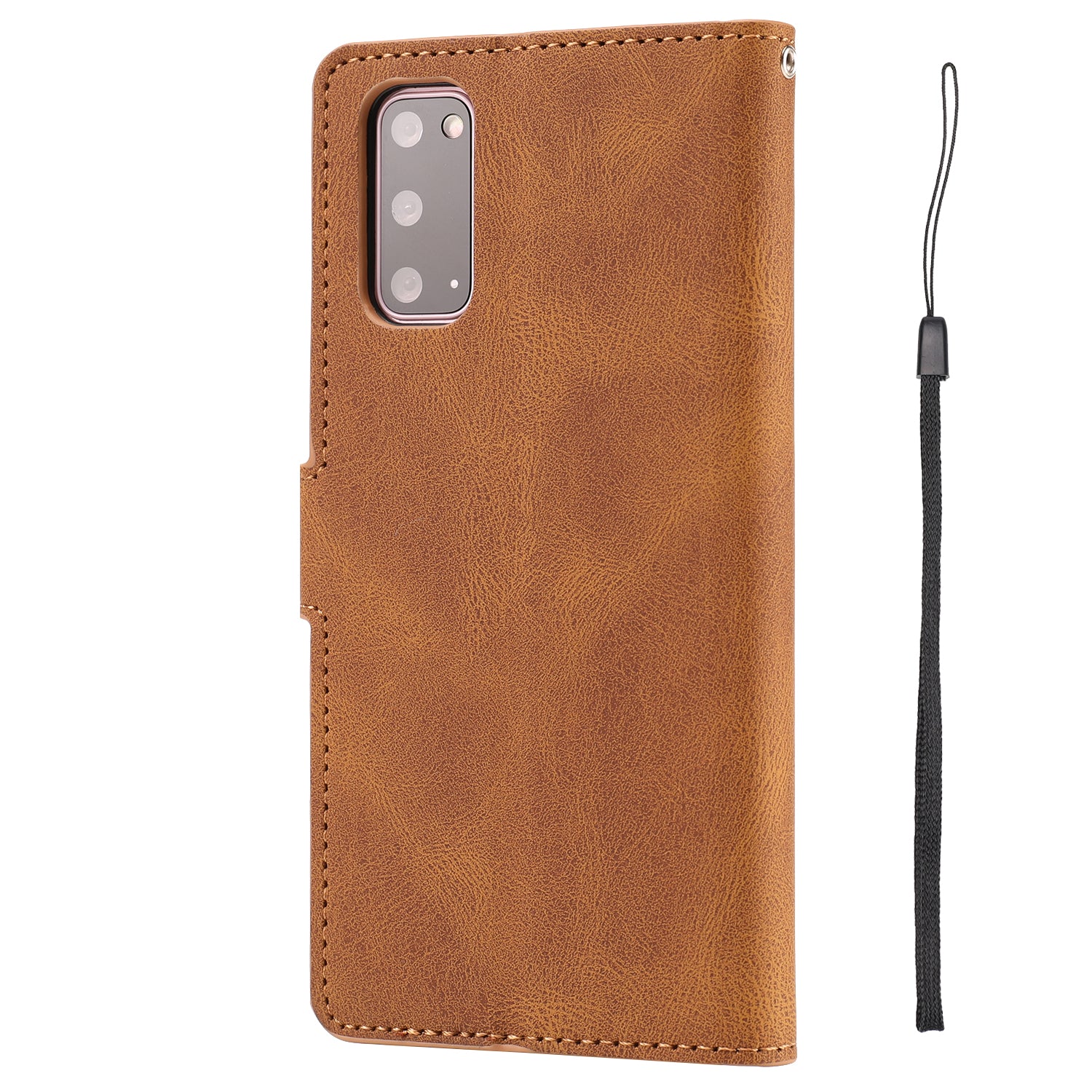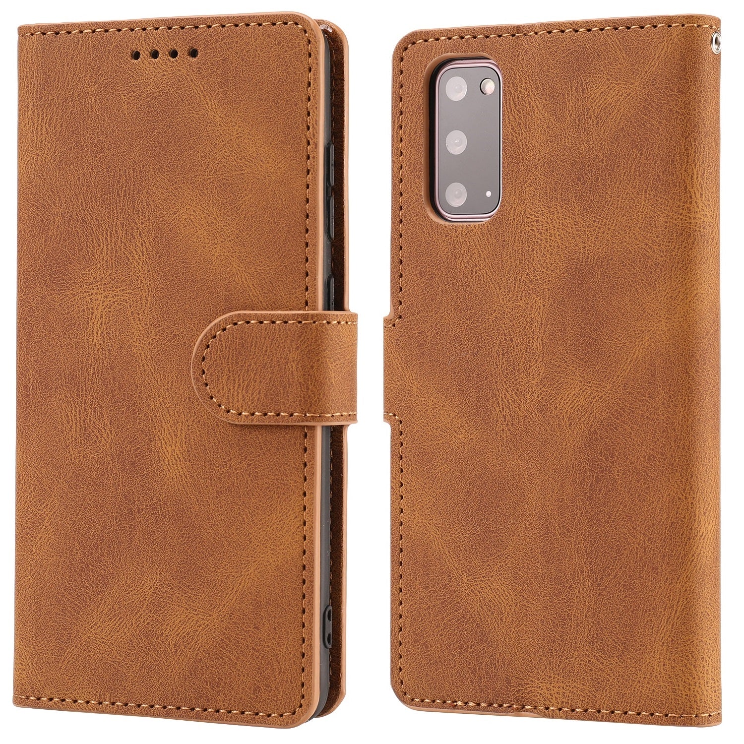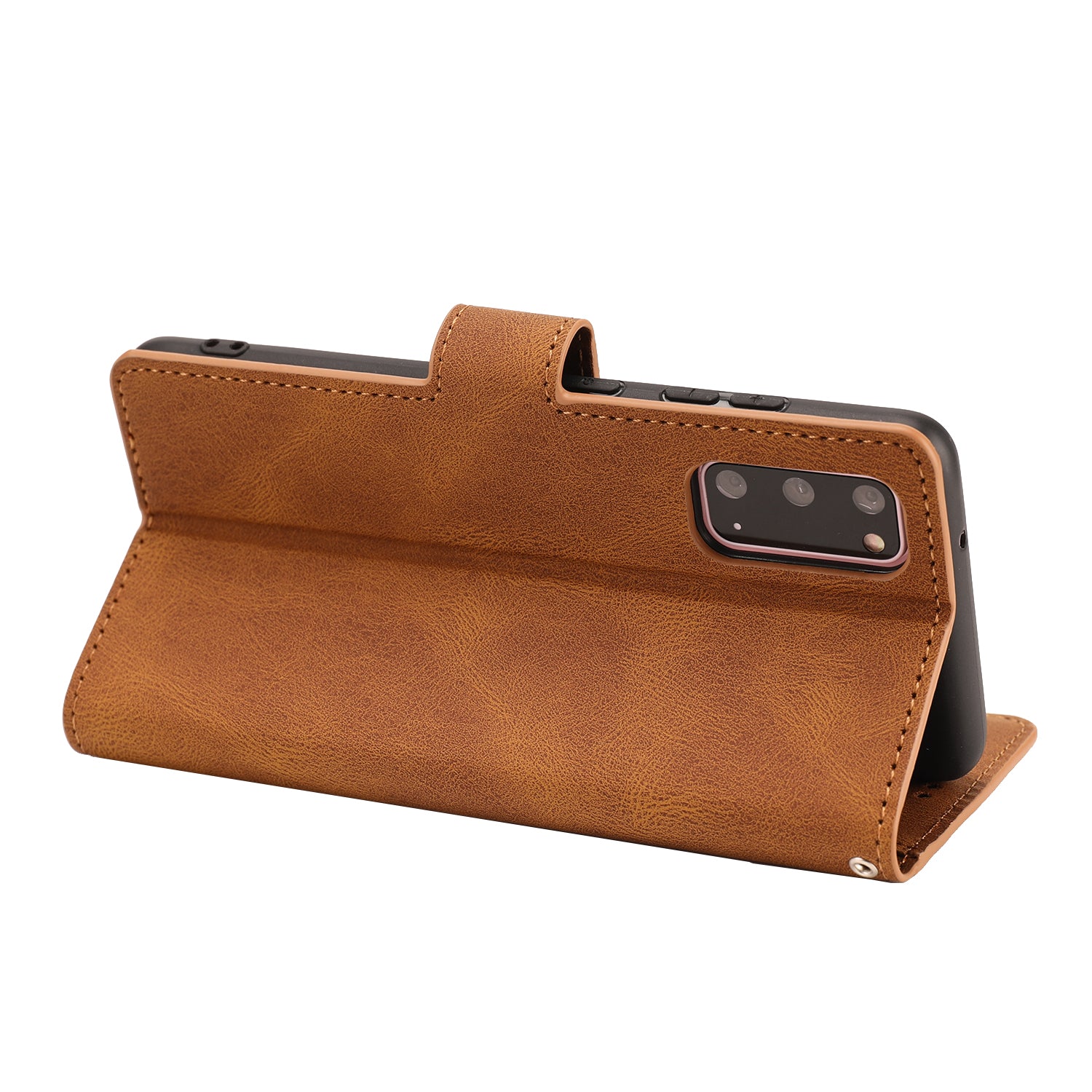 TPU + PU Leather Phone Protective Shell with Wallet and Stand for Samsung Galaxy S20 4G/S20 5G - Light Brown