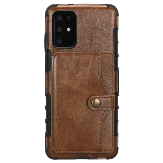 SHOUHUSHEN Retro Style Card Slots PU Leather Coated Hard PC Case for Samsung Galaxy S20 Plus - Brown