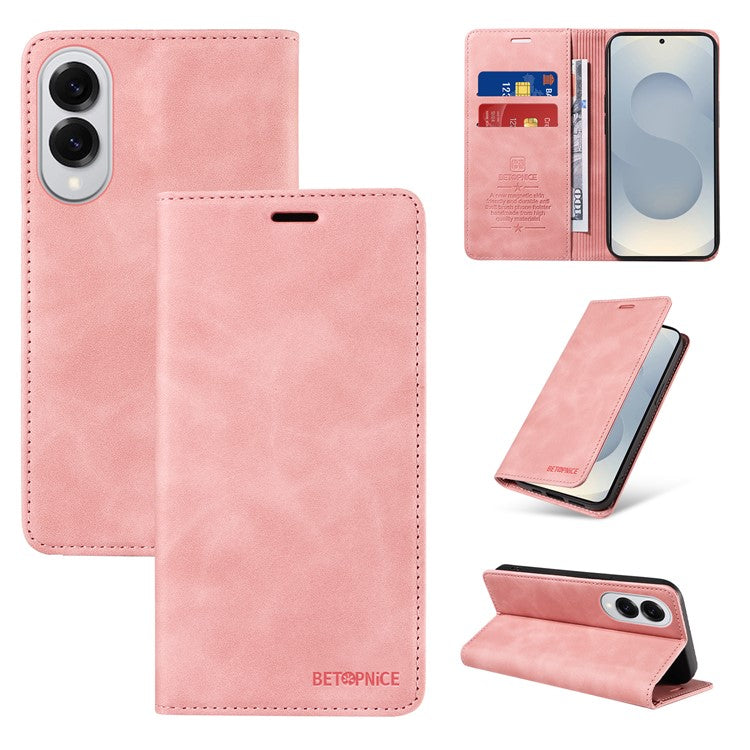 BETOPNICE 003 For Samsung Galaxy S25 Edge Case Wallet Leather Phone Cover with Stand - Pink