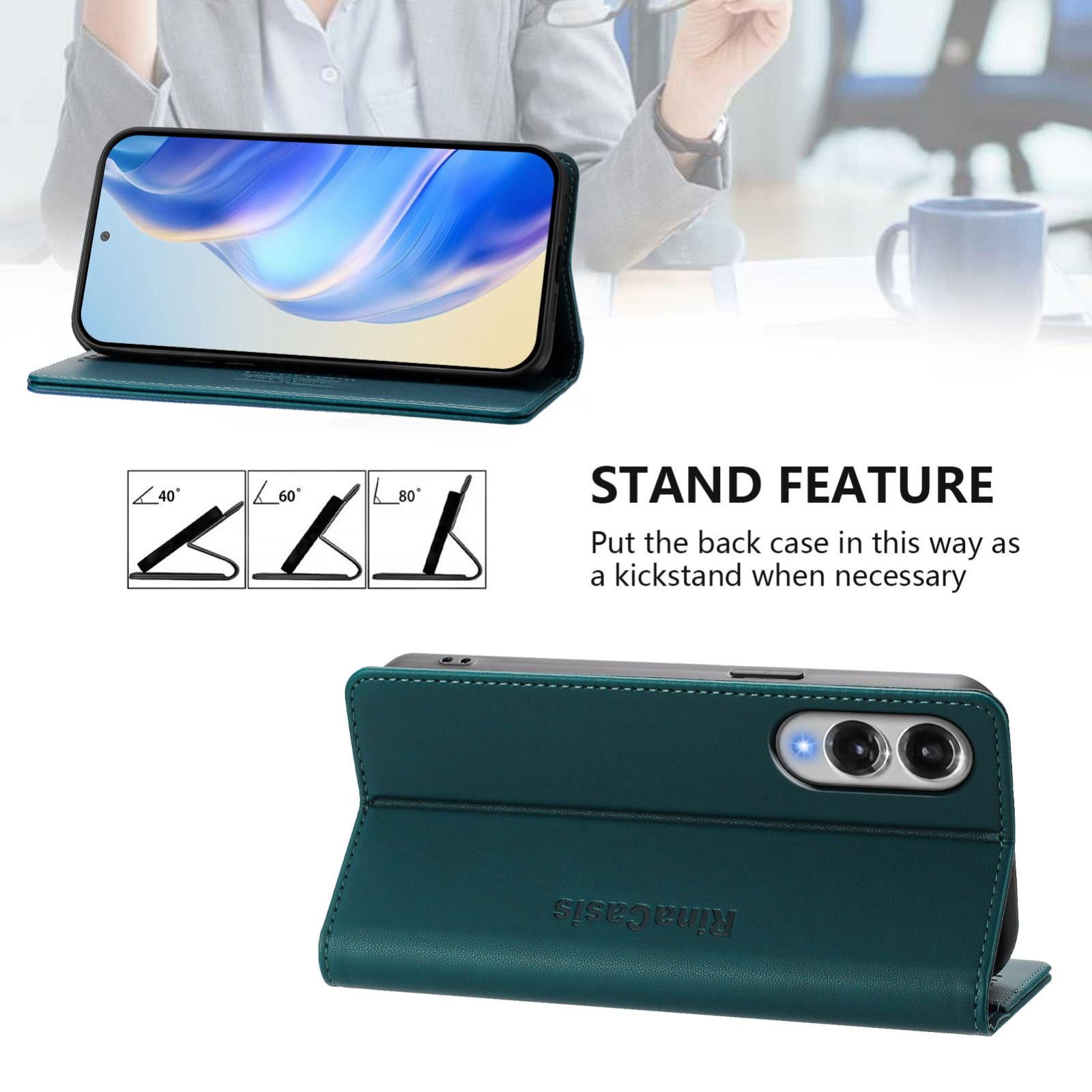 For Samsung Galaxy S25 Edge 5G RC01 Dual-Folded Magnetic Suction RFID Leather Phone Case(Dark Green)