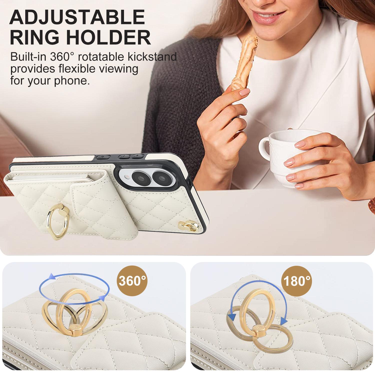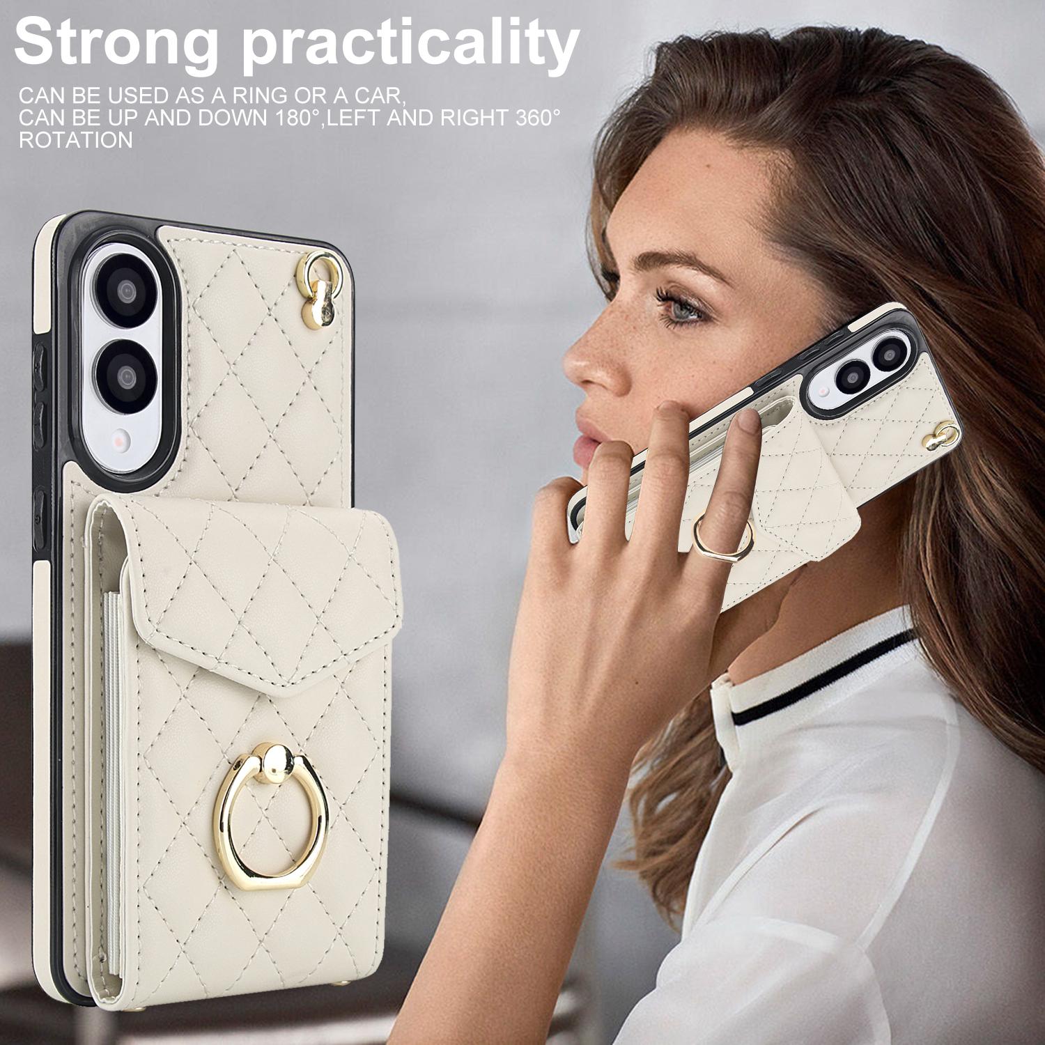 For Samsung Galaxy S25 Edge 5G Rhombic Texture Card Bag Phone Case with Long Lanyard(White)