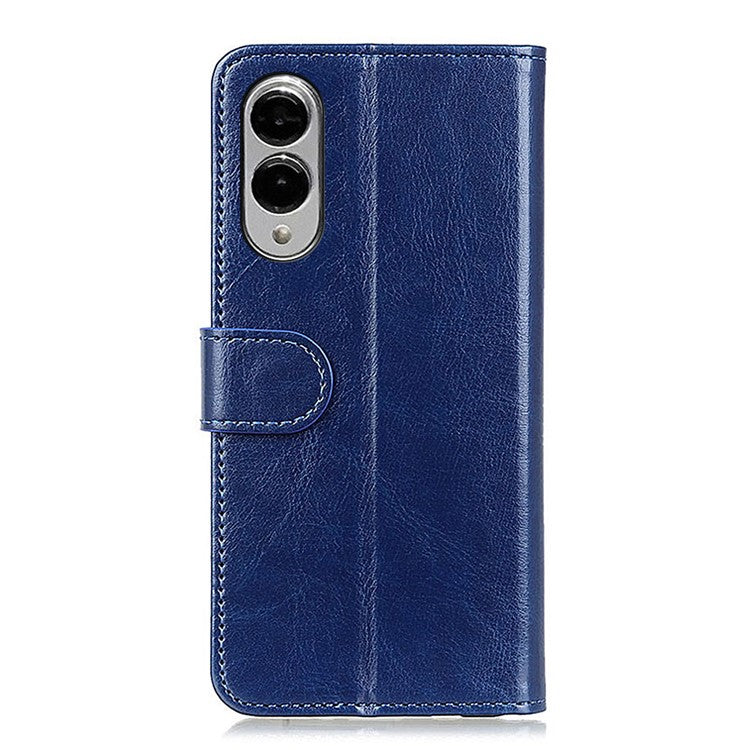 For Samsung Galaxy S25 Edge Case Crazy Horse Texture PU Leather Phone Stand Cover - Blue