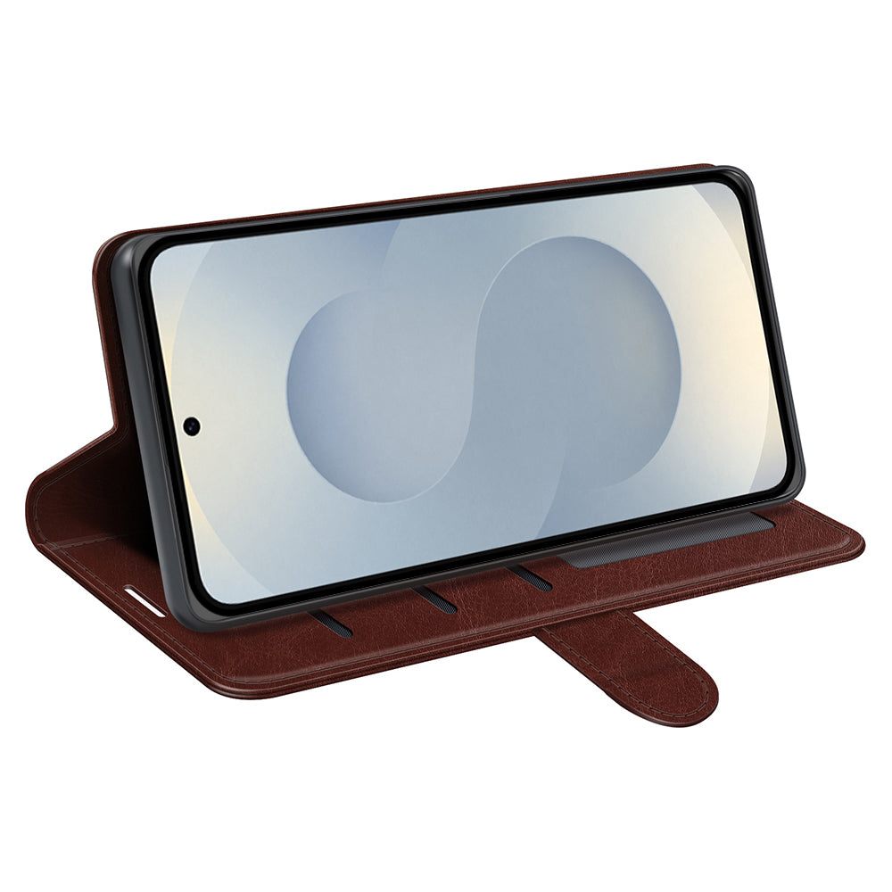 For Samsung Galaxy S25 Edge Case Crazy Horse Texture Stand Leather Phone Cover - Brown