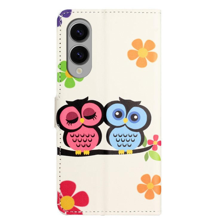 For Samsung Galaxy S25 Edge Case Pattern Print PU Leather Wallet Phone Cover - Couple Owls