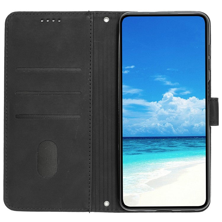 For Samsung Galaxy S25 Edge Case Viewing Stand PU Leather Phone Cover Imprinted Heart Pattern - Black