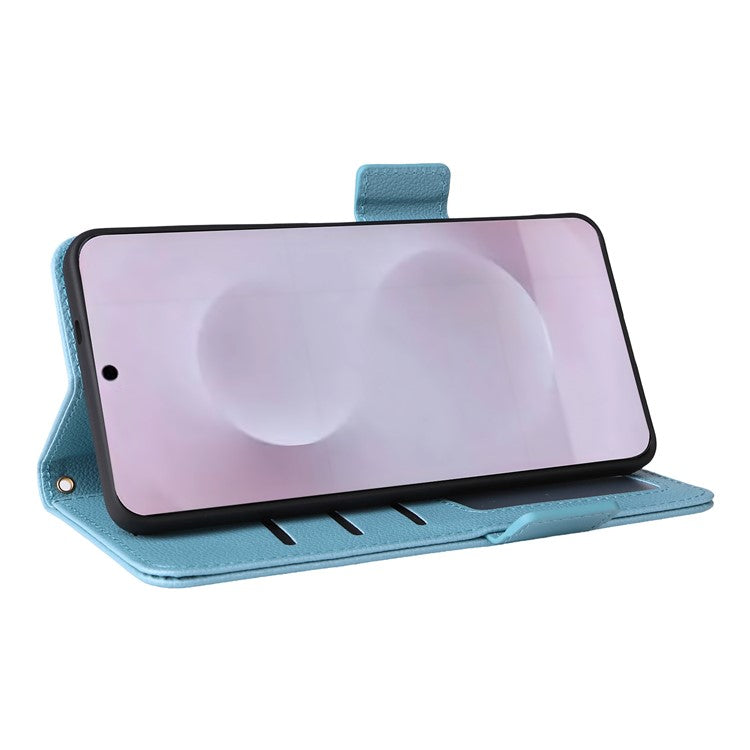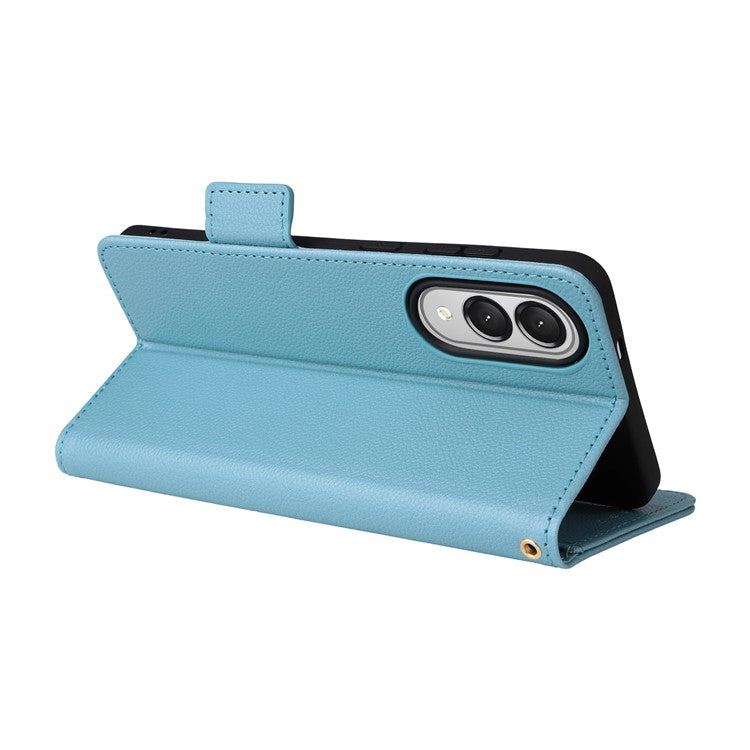 For Samsung Galaxy S25 Edge Case Wallet Flip Litchi Texture PU Leather Phone Cover - Baby Blue